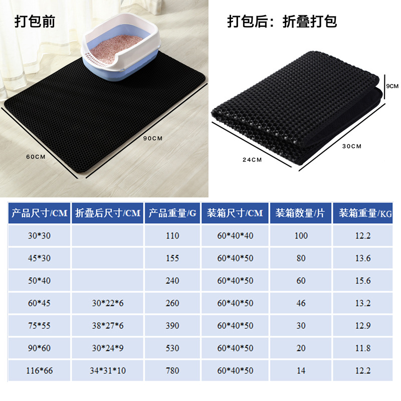 Estera de arena para gatos Caja de arena para gatos estera anti-salpicaduras lavable de gran tamaño Eva Filtro de doble capa anti-out estera de control de arena para gatos