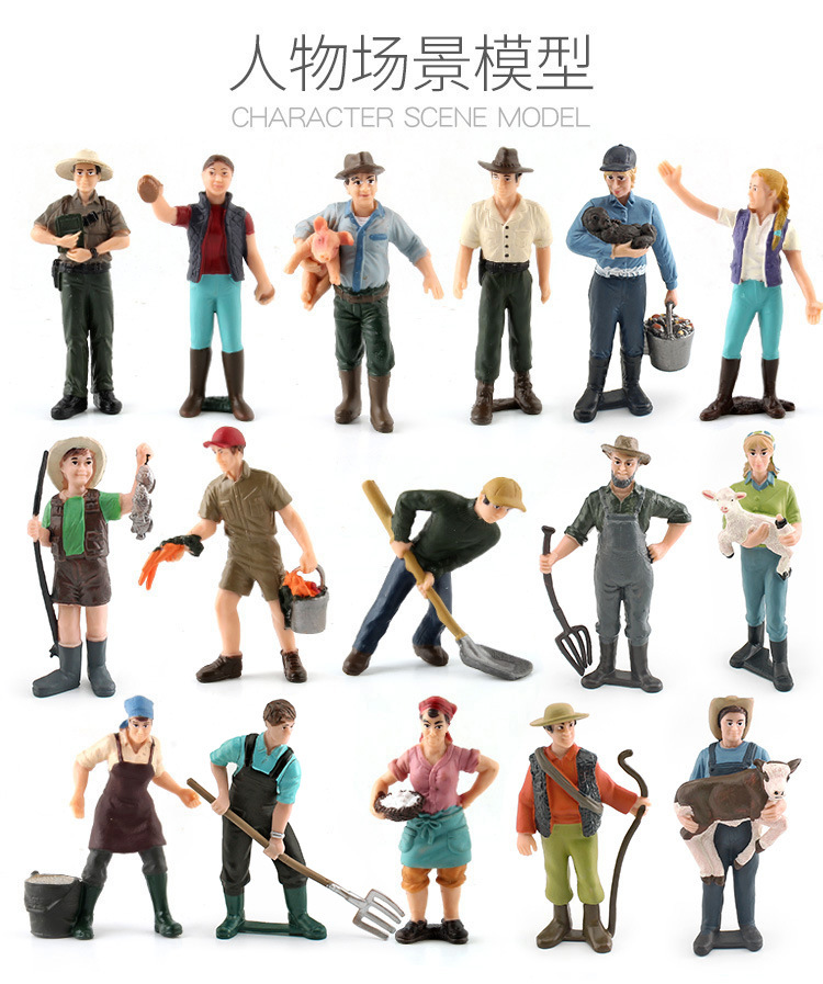Simulación granja Rancho modelo Pastor Encargado agricultor campesino mujer muñeca bandeja de arena decoración mano juguete traje