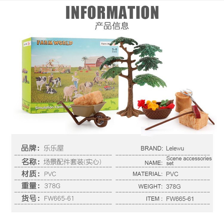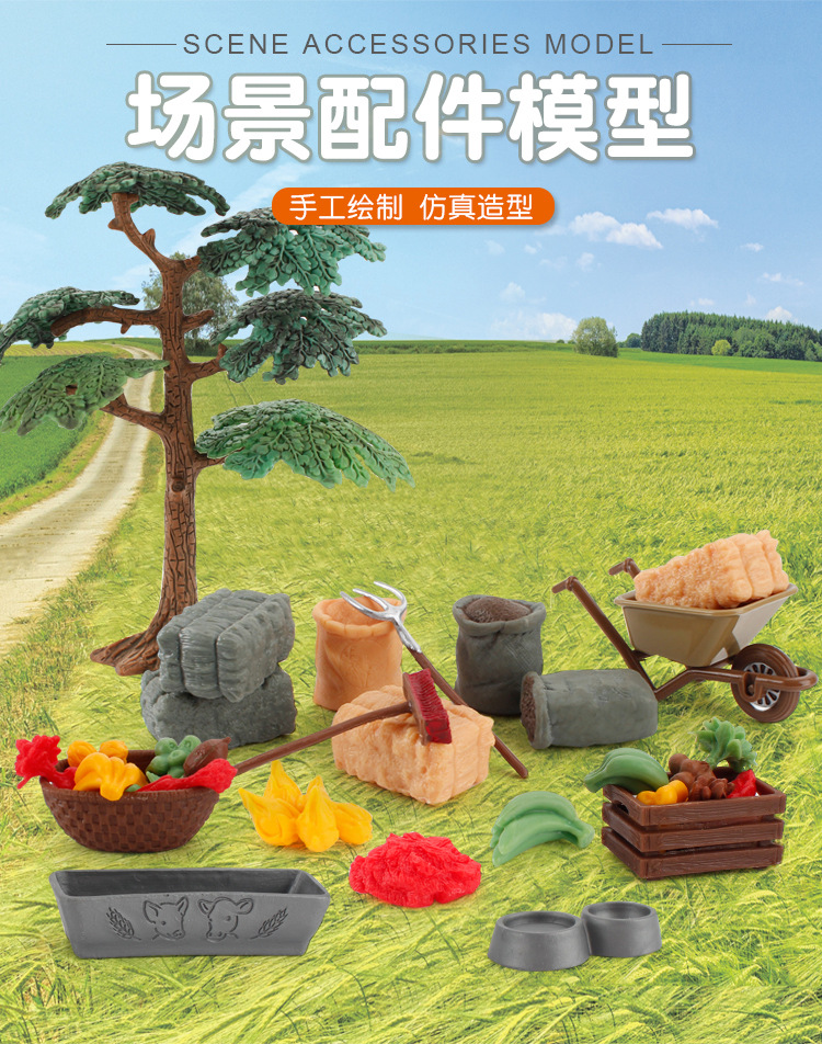 | Colores | Juego de adornos de escena FW665-61 378g (accesorios de color aleatorio),ZQZ0111 Medio Árbol 68.5g,Pila de grano de 4 piezas 77.7g,Juego de 4 piezas de herramientas agrícolas 13g,Juego de 5 piezas de comedero 18g,Juego de verduras de 6 piezas 18.2g,Frutas 4 piezas 10g,Carro pequeño 13g |