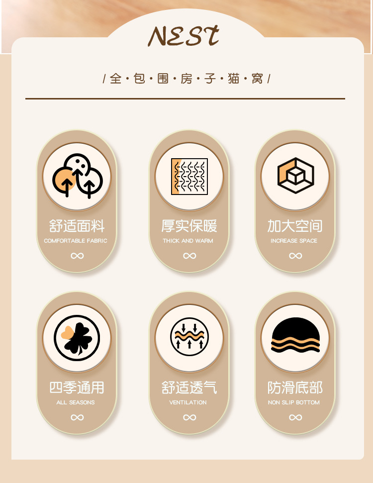 Nido de gato transfronterizo invierno semicerrado cálido perrera nido de mascota pin nido de gato desmontable nido de algodón lleno