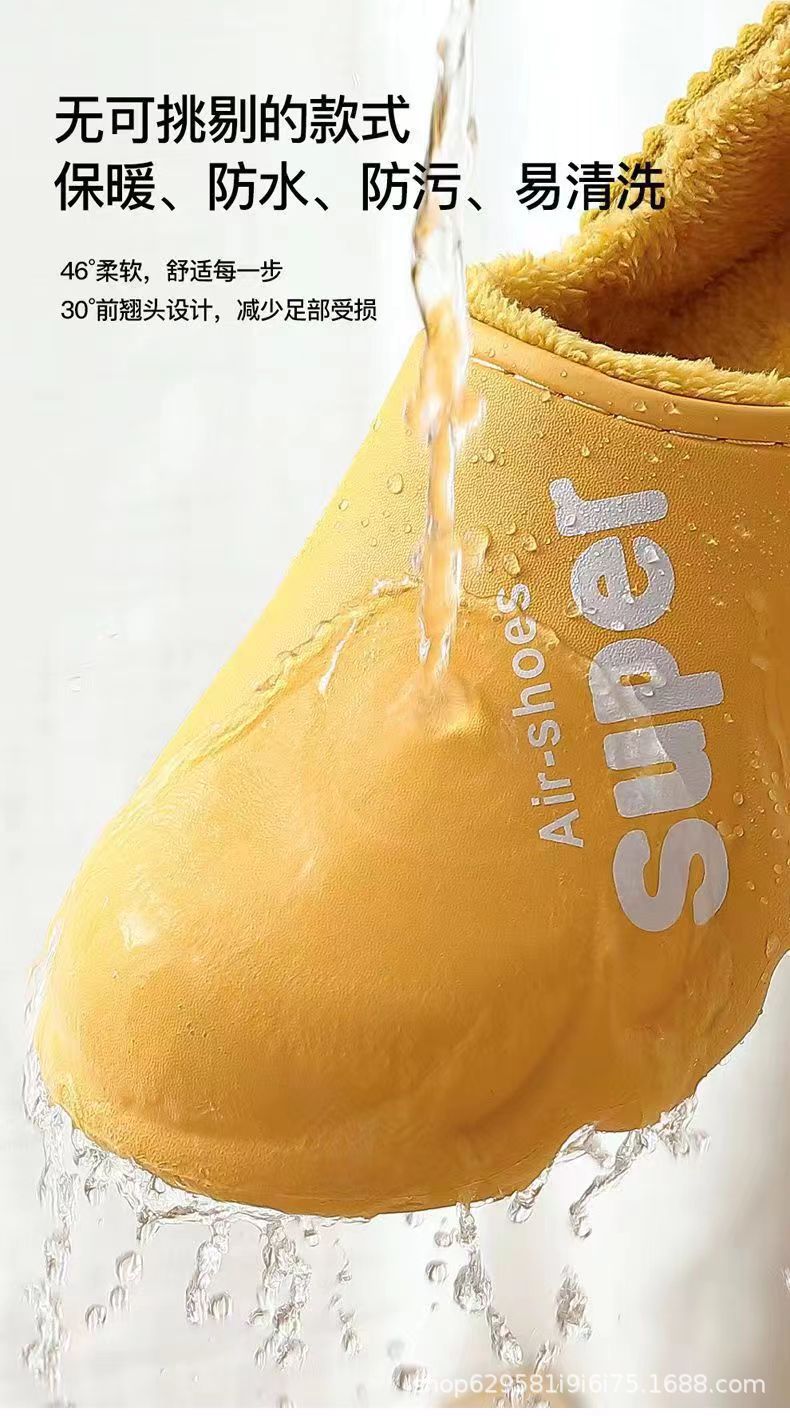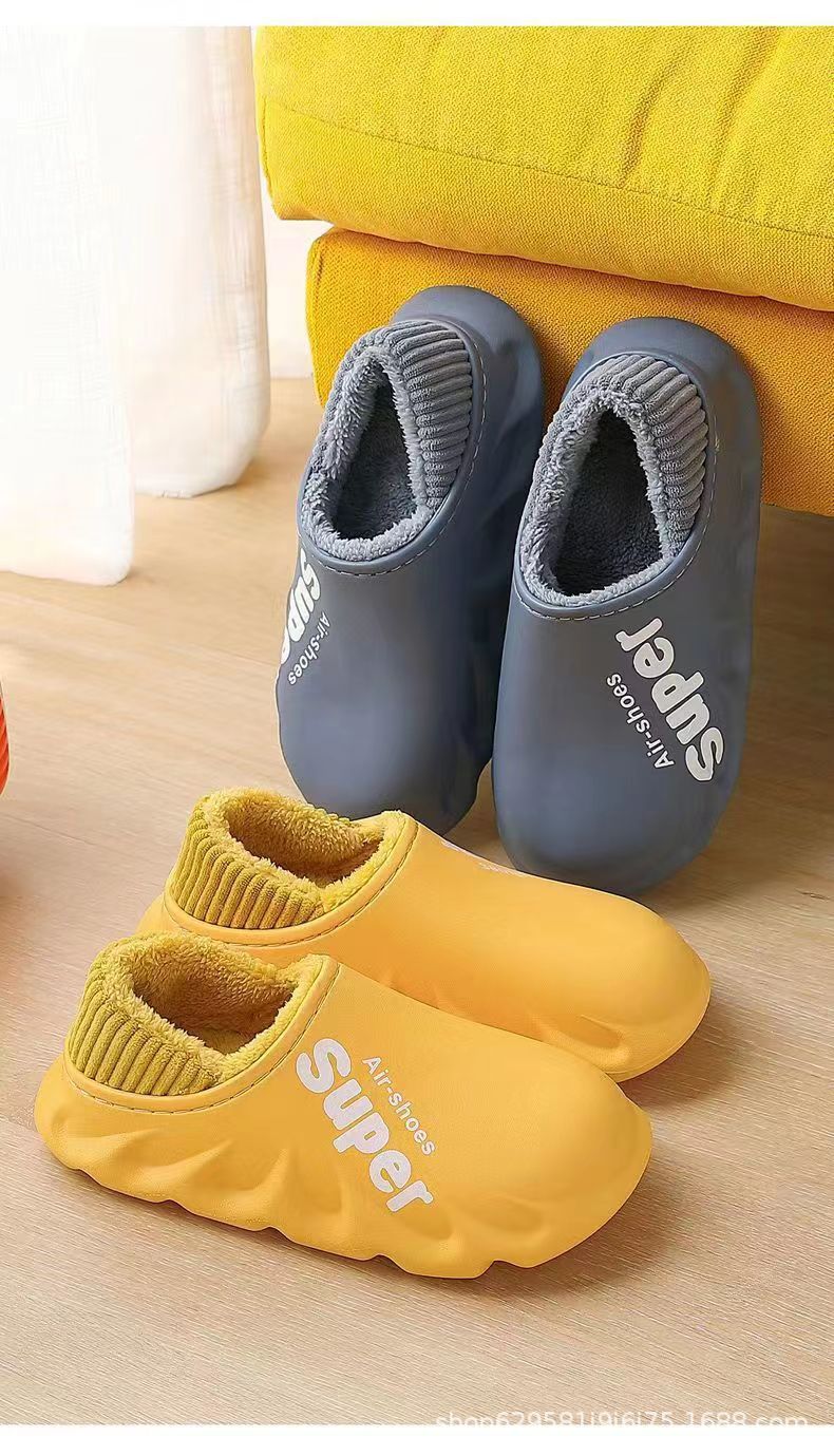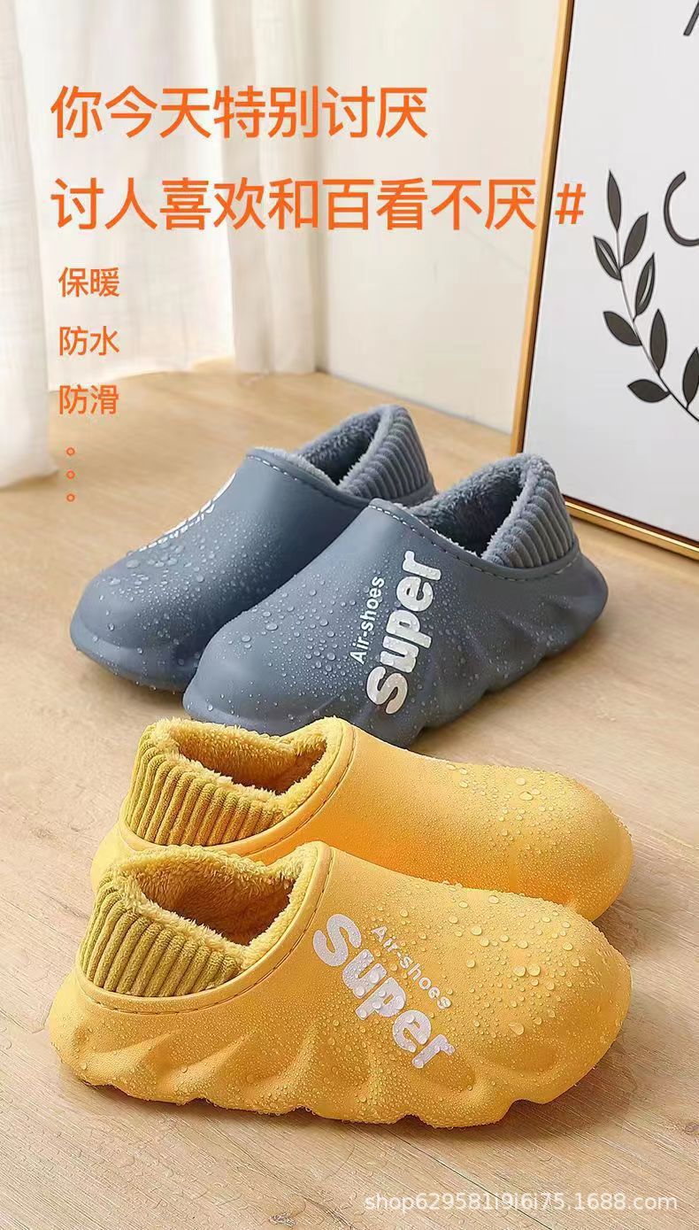 Zapatillas de algodón para hombres Zapatillas de invierno antideslizantes impermeables para el hogar Fondo grueso Zapatillas de algodón térmico interior Otoño e Invierno para mujeres