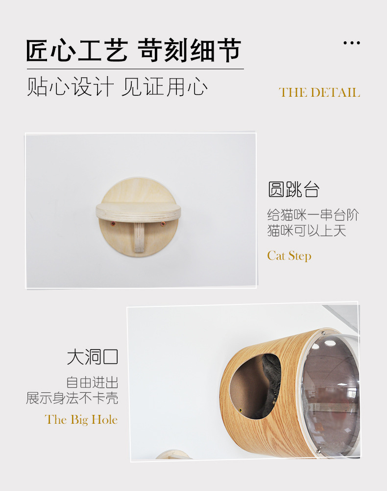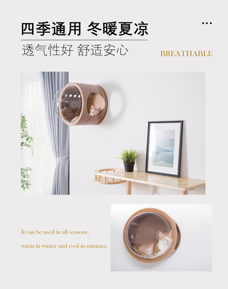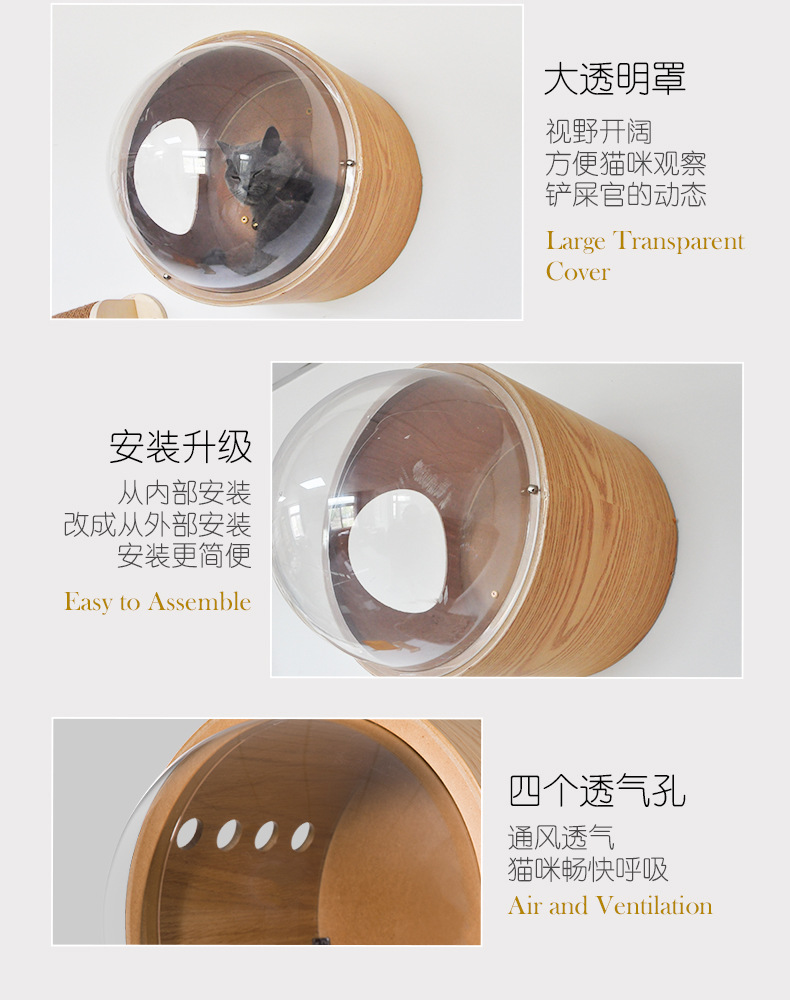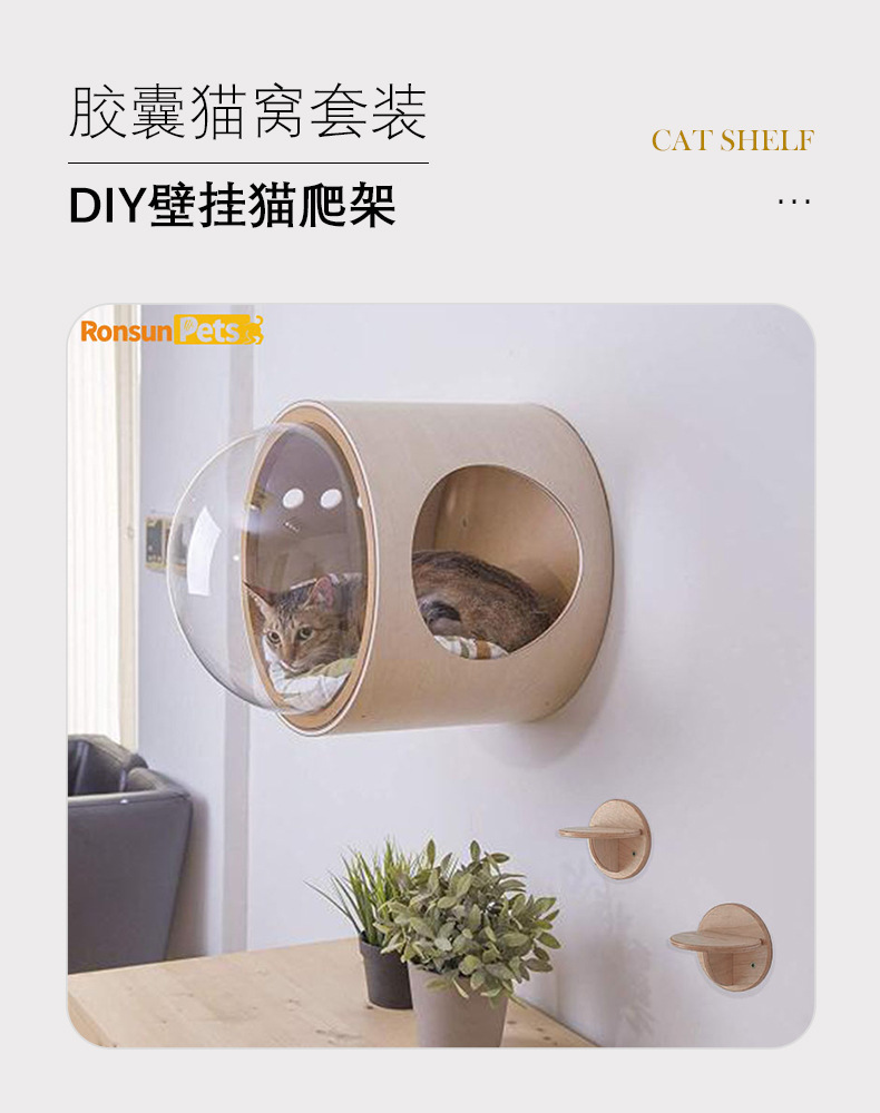 Cápsula montada en la pared nido de gato cubierta transparente de pared completamente cerrada Gato cápsula espacial extraíble nido de gato de madera gato traje de plataforma de salto