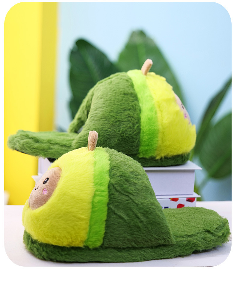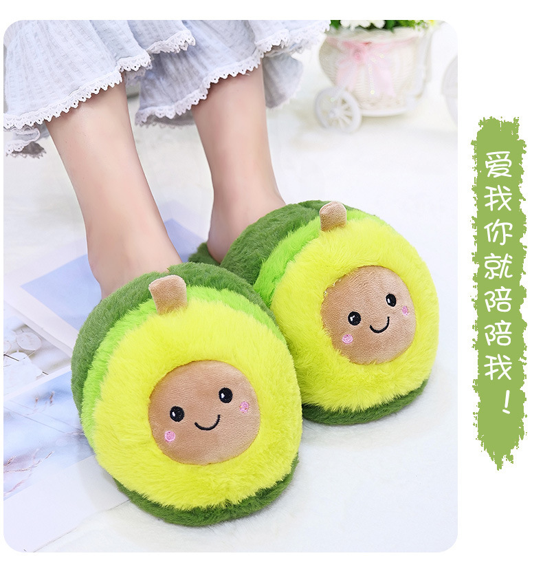 Nuevo invierno cálido chica aguacate zapatillas Zapatillas de algodón de felpa lindo de la historieta casa pareja zapatos gruesos de algodón