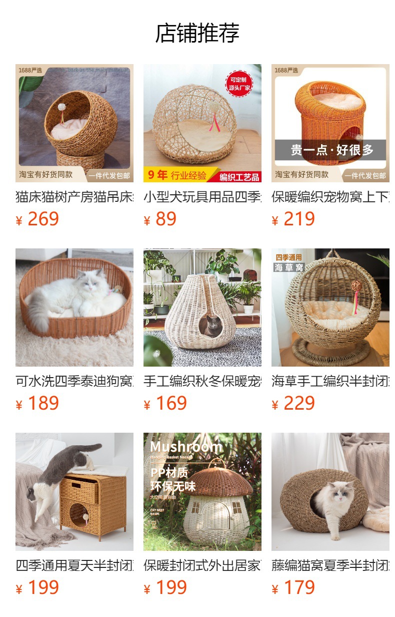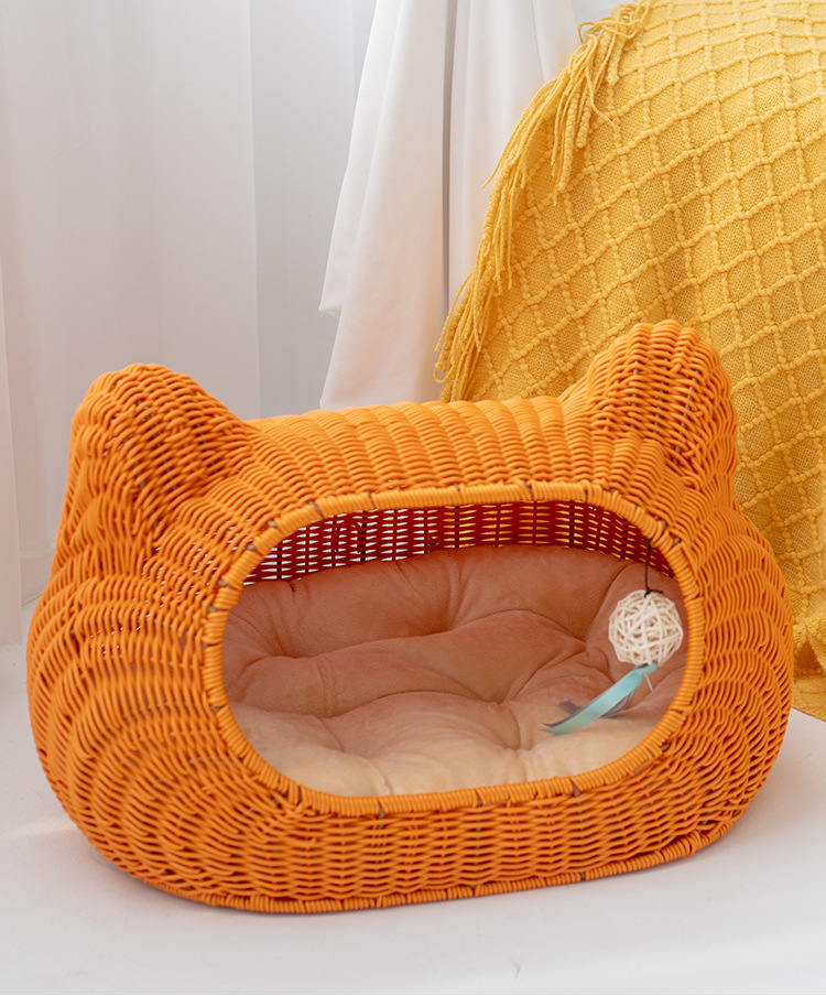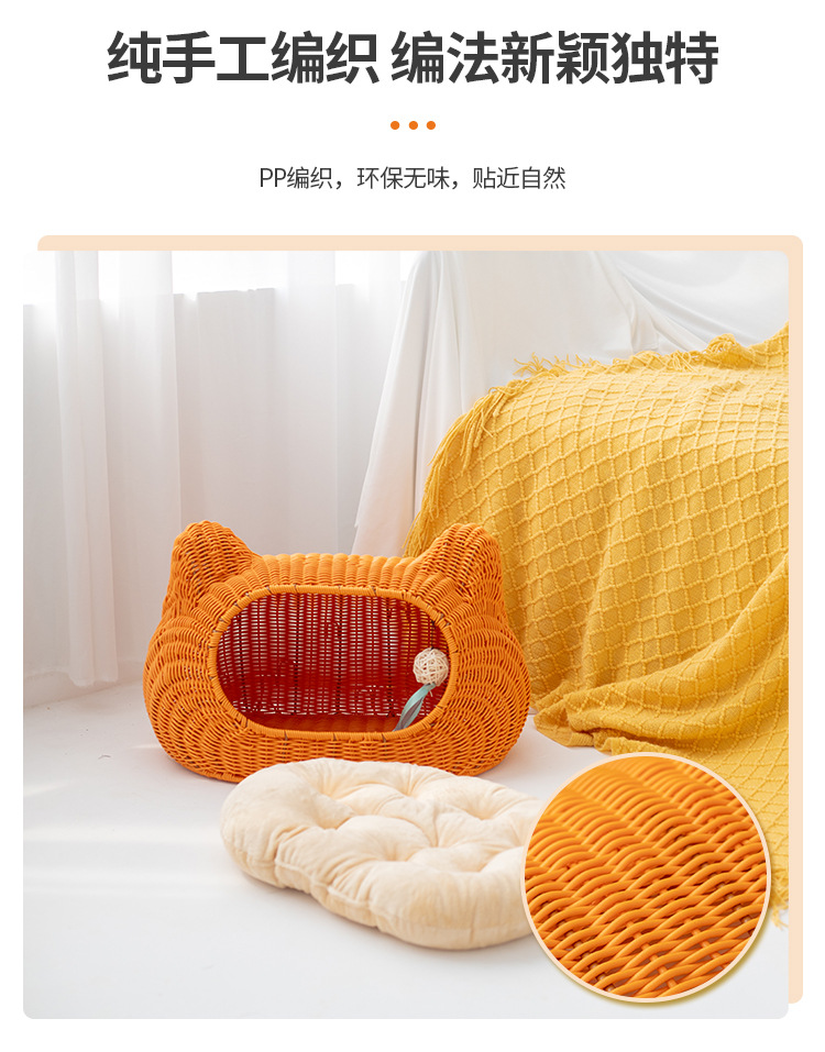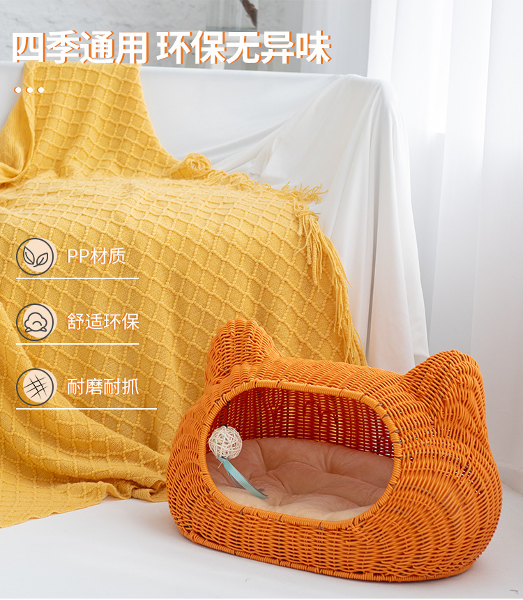 Lavable ratán gato nido cuatro estaciones universal gato jaula perrera suministros para mascotas tejido a mano semi-cerrado gato nido