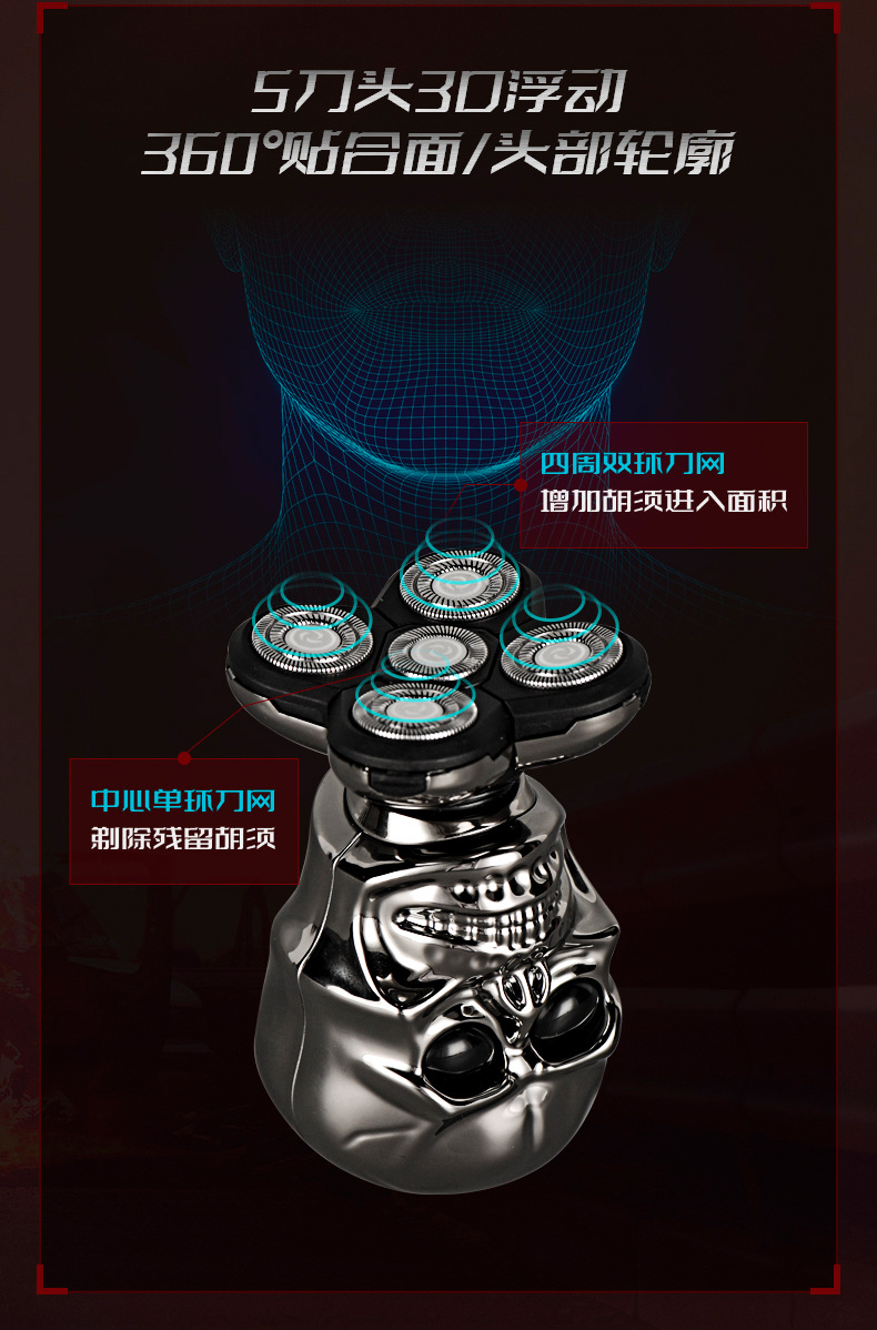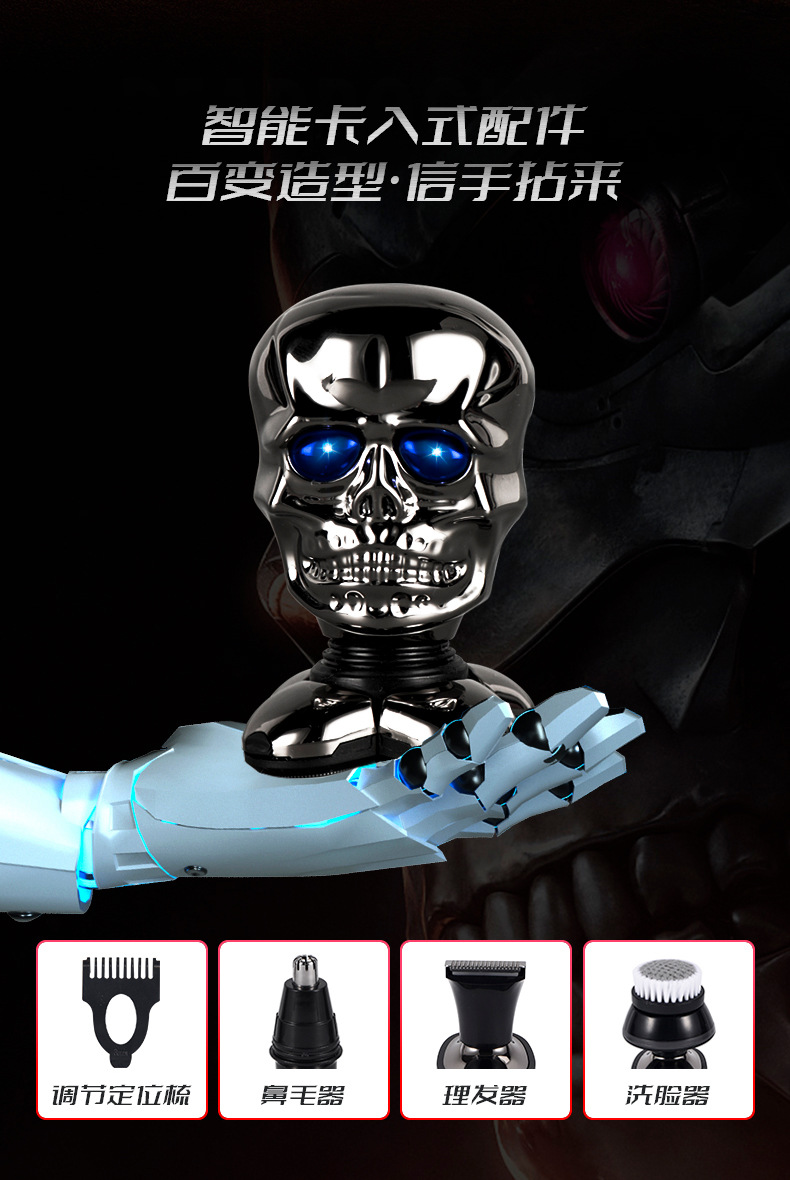 Máquina de afeitar multifuncional para cabeza calva, afeitadora eléctrica recargable y lavable para hombres.