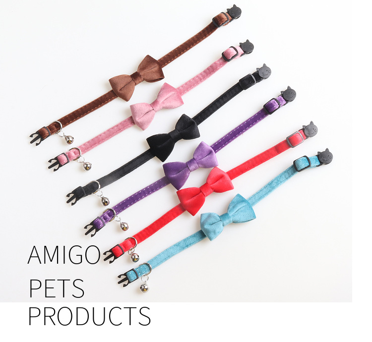 Amingge nuevo mascota gato collar avanzado textura terciopelo arco gato collar con campana