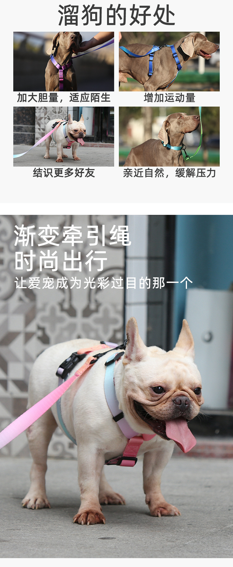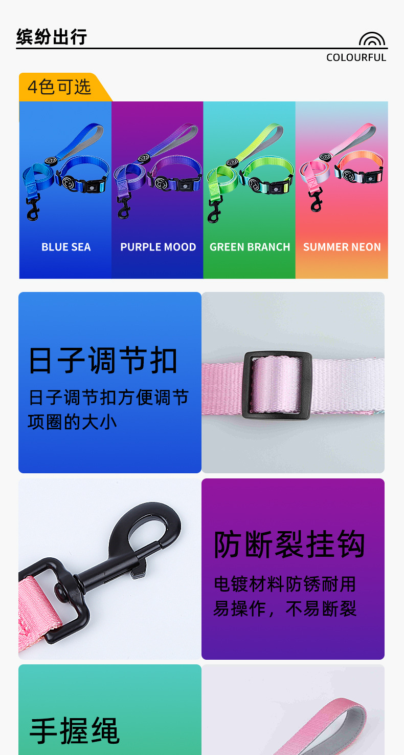 Correa de perro pequeño perro mediano y grande cuerda para caminar color degradado Cadena de perro correa de pecho suministros para mascotas collar