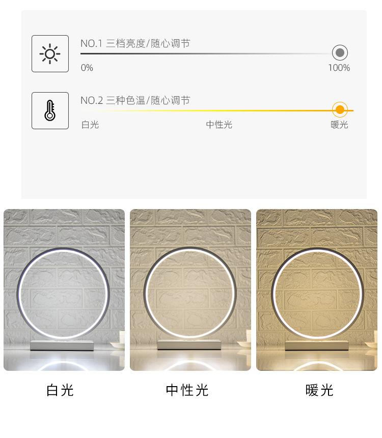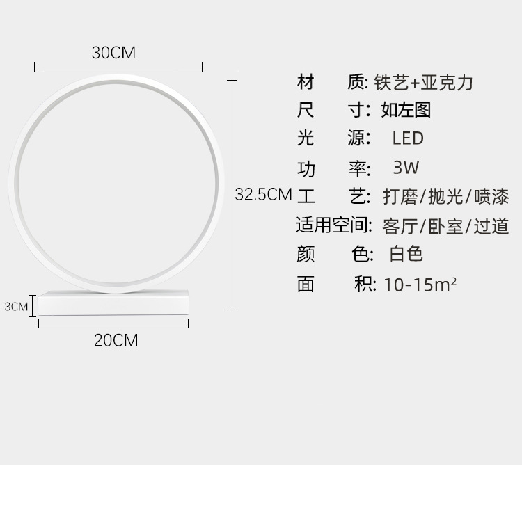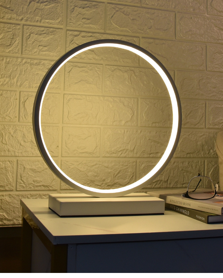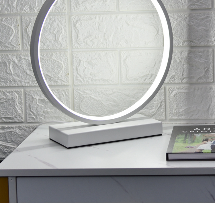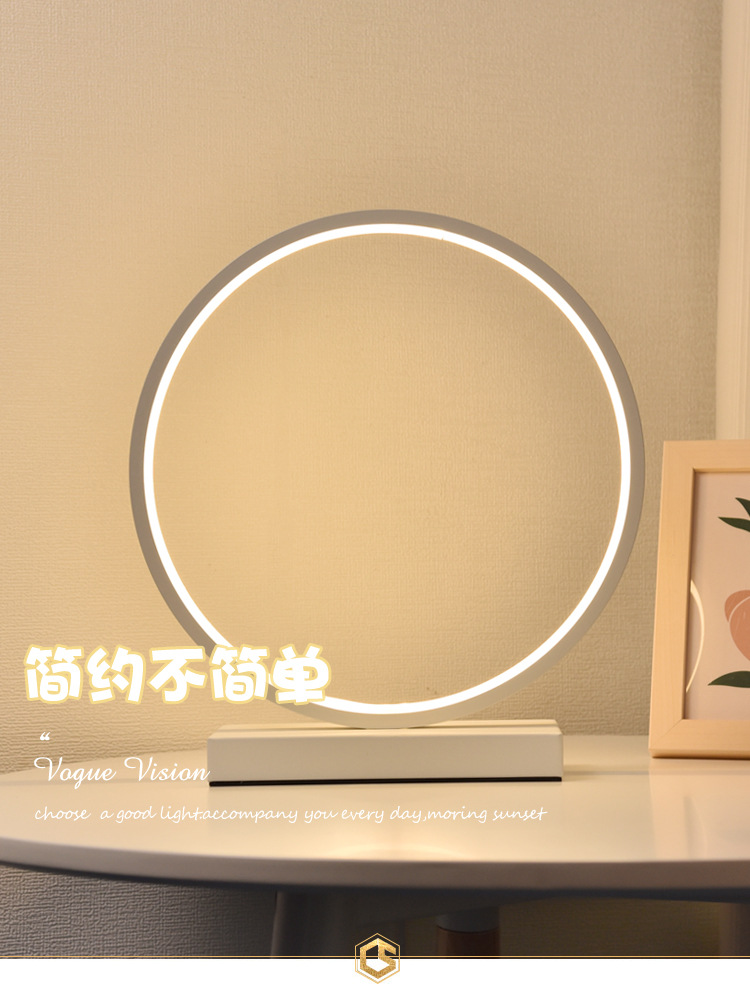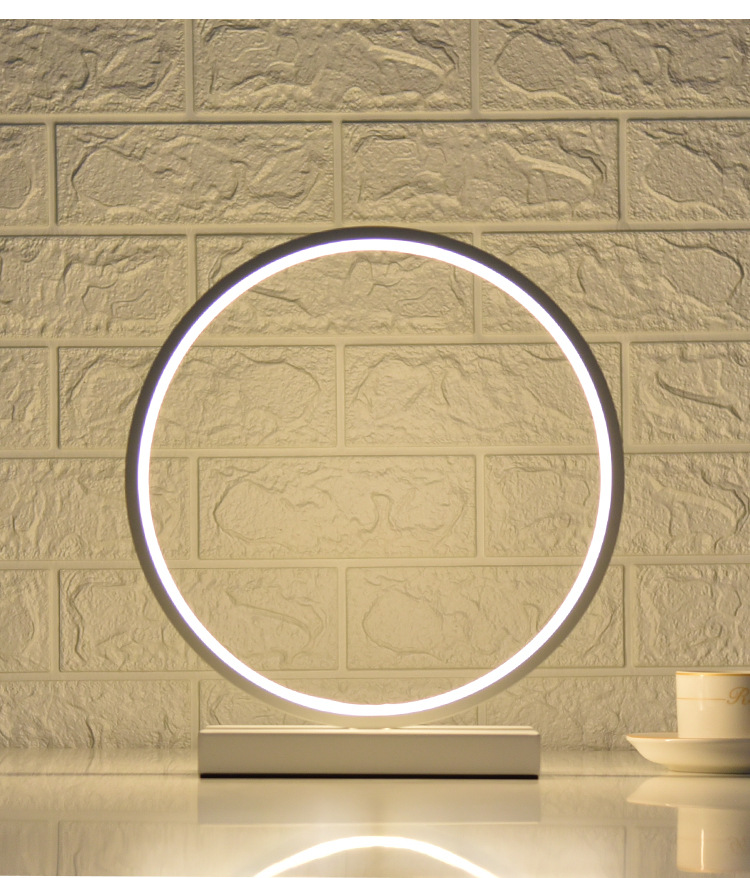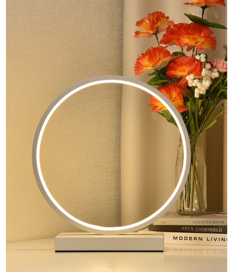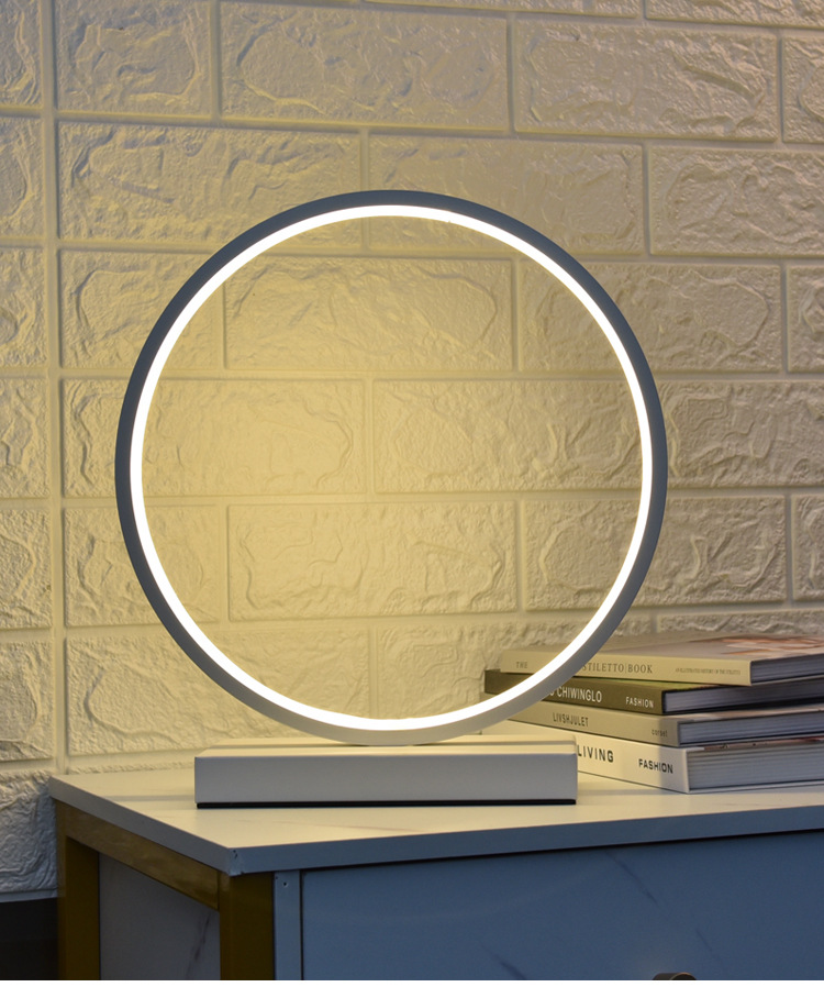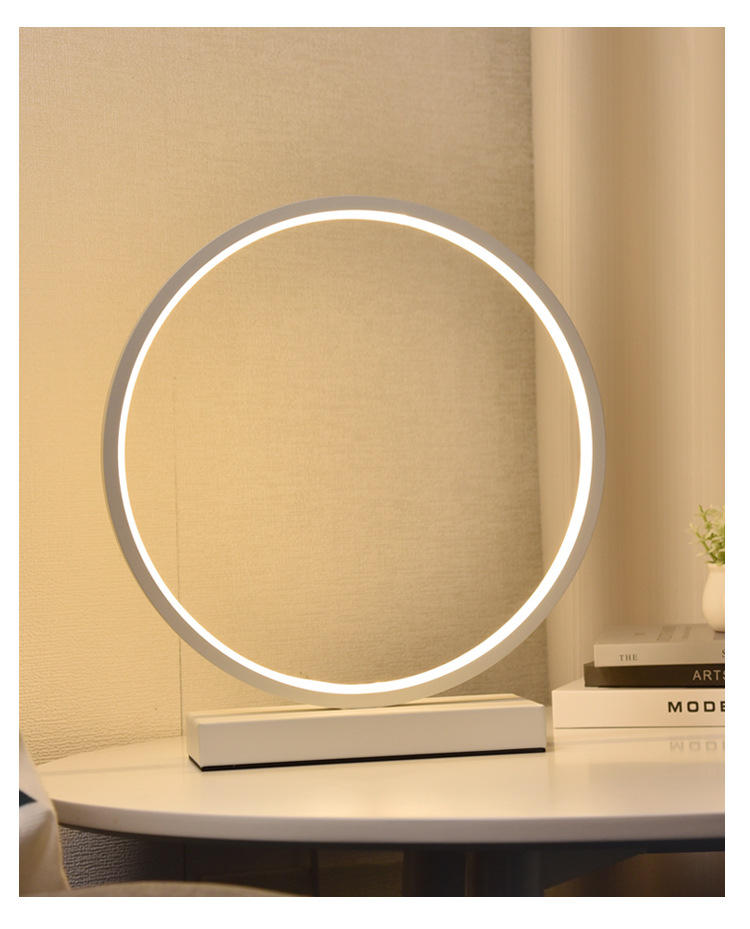 Lámpara de escritorio LED nórdica con luz ambiental, diseño circular, ideal para dormitorio o escritorio