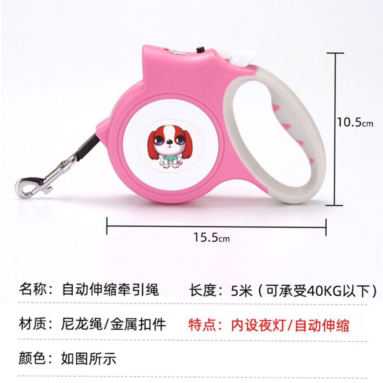Popular mascota con correa de tracción automática ligera mascota automática tracción cuerda perro caminar dispositivo 5 M