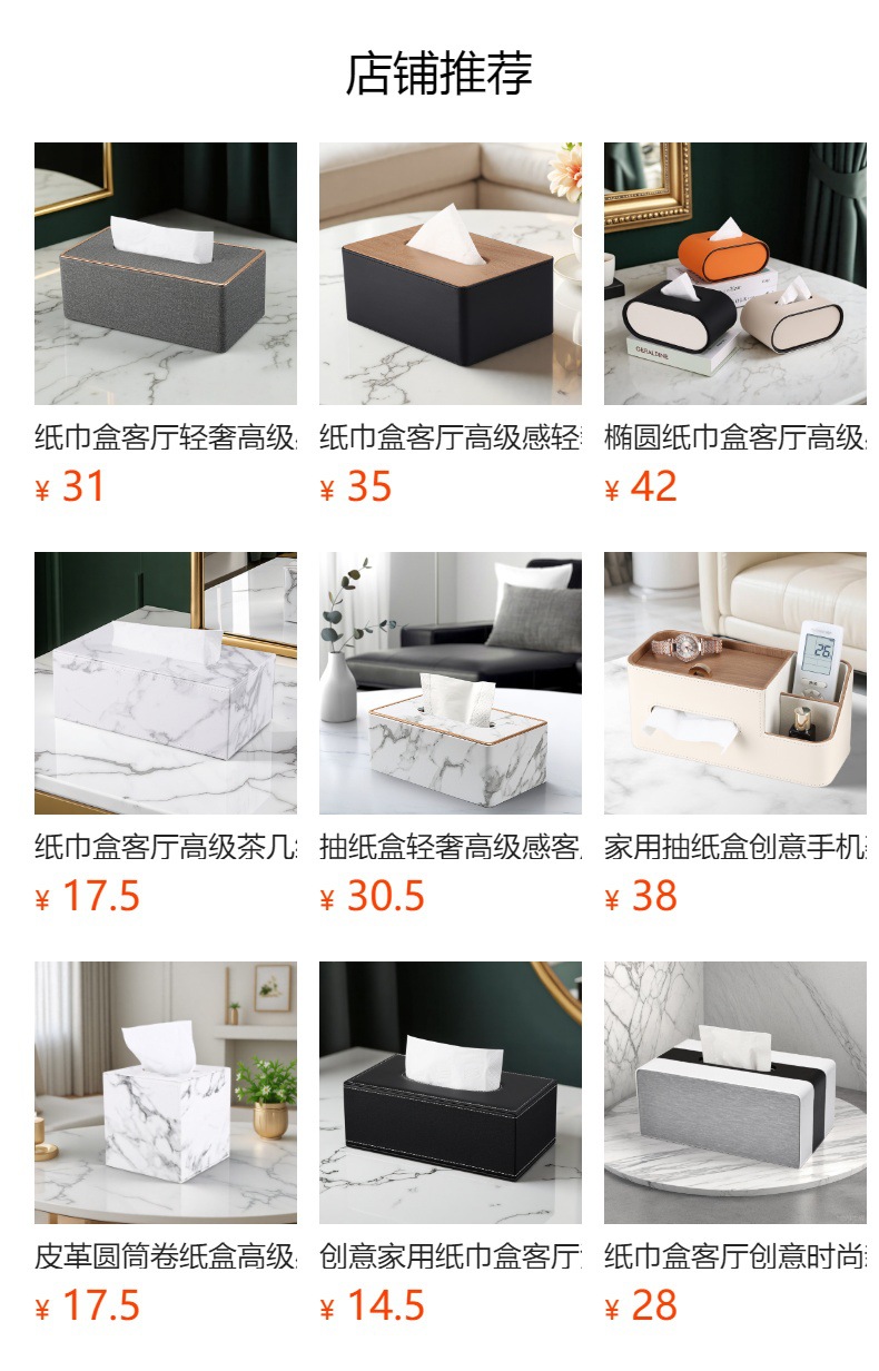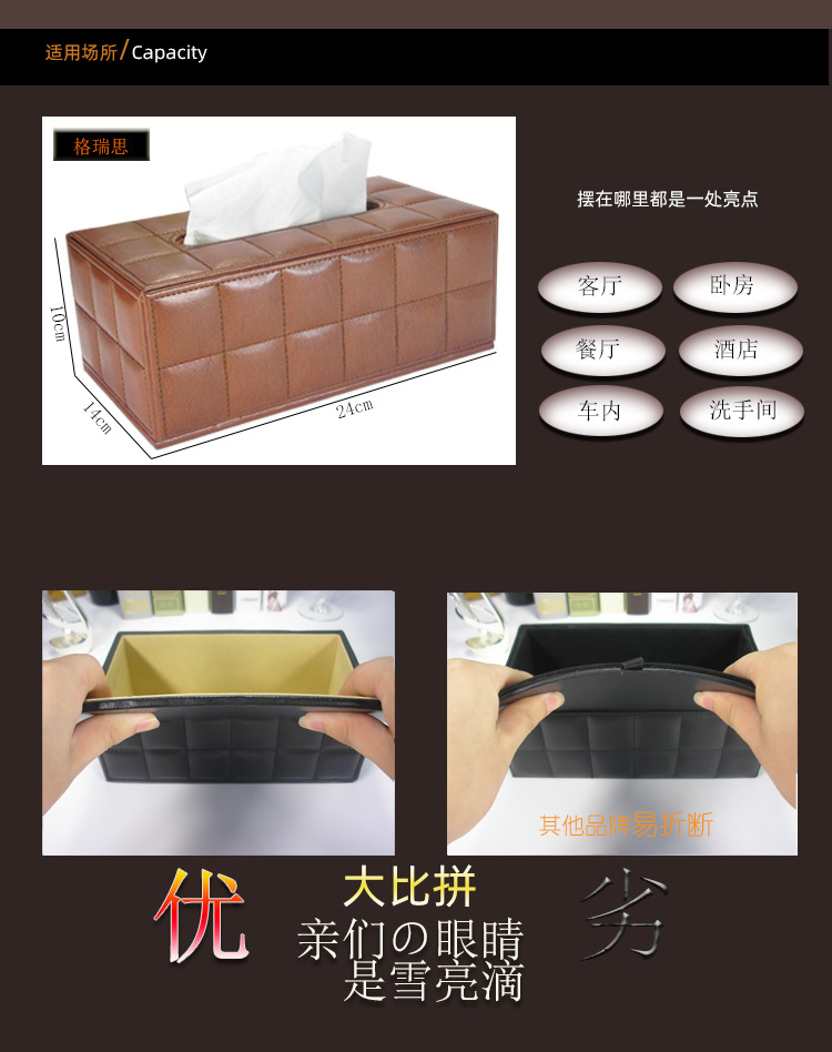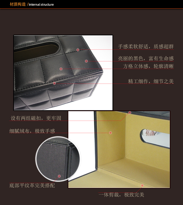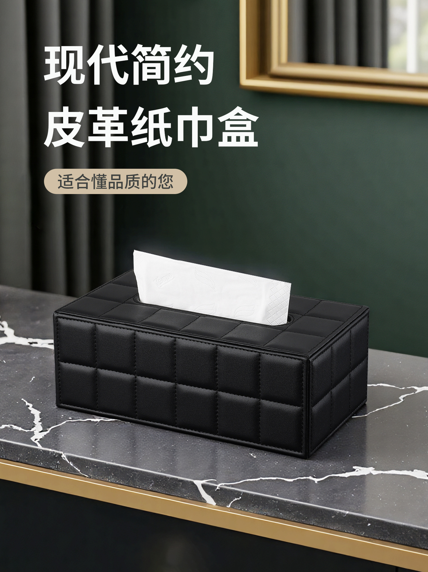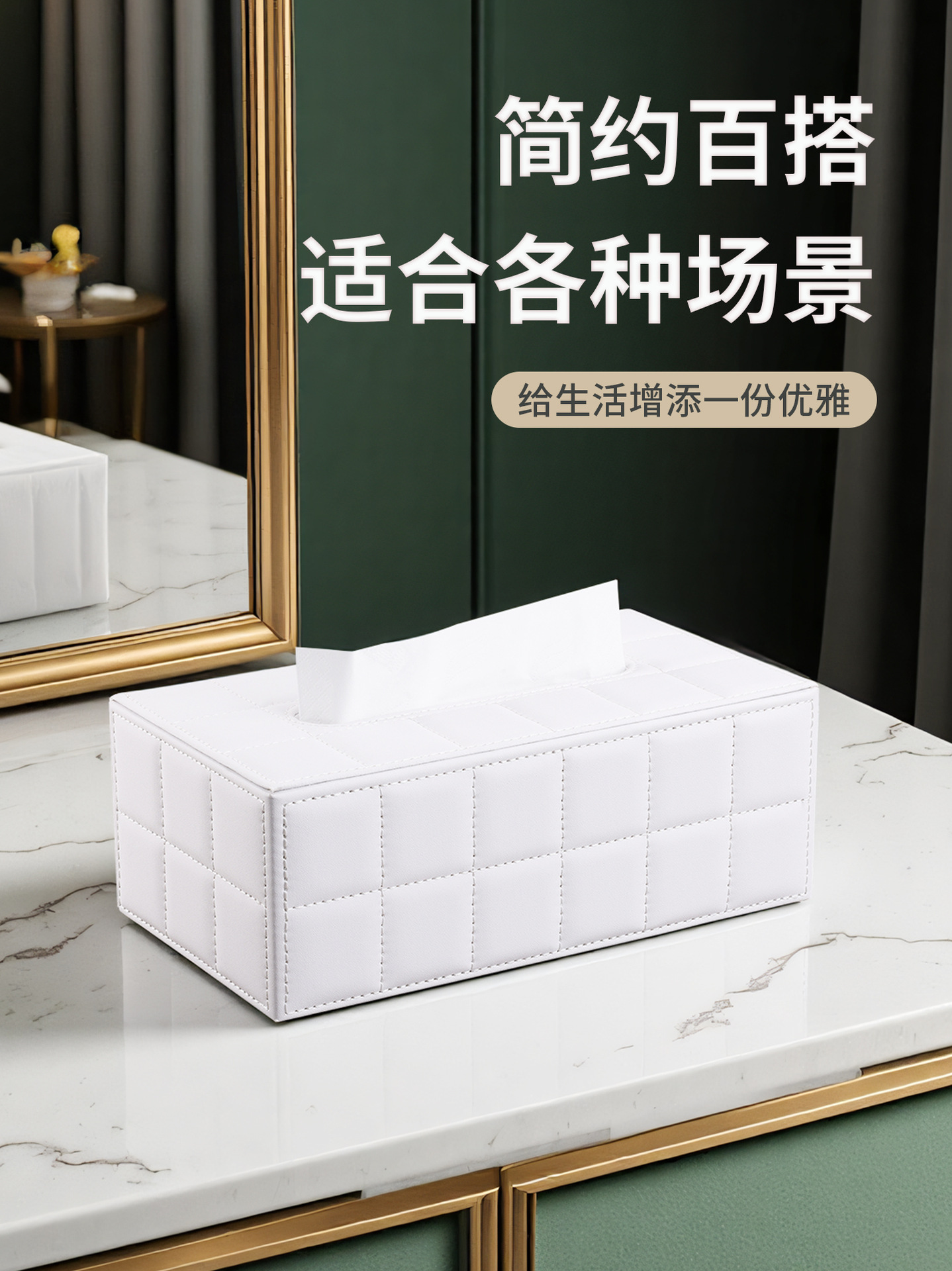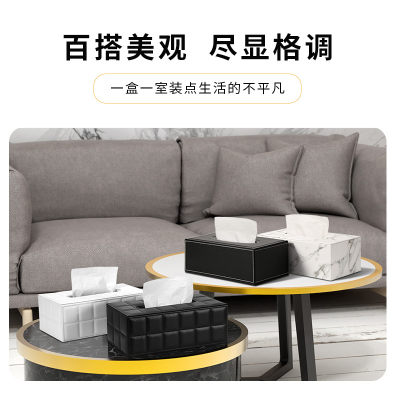 Caja de pañuelos de lujo ligero, mesa de centro de sala de estar, caja de dibujo de papel de cuero de escritorio de alta gama, caja de dibujo de alto valor para restaurantes de hotel en casa