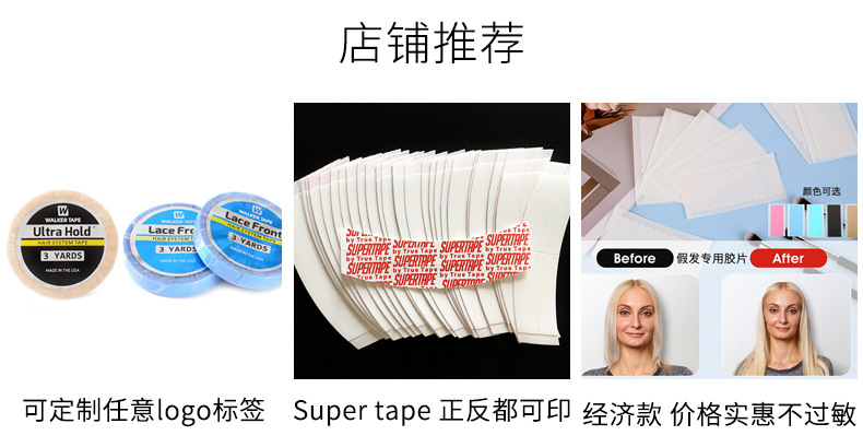 Película de peluca de pu pegajosa, cinta de extensión de cabello de reemplazo de pegamento azul de walker, peluca biológica impermeable y resistente al sudor, cinta de doble cara