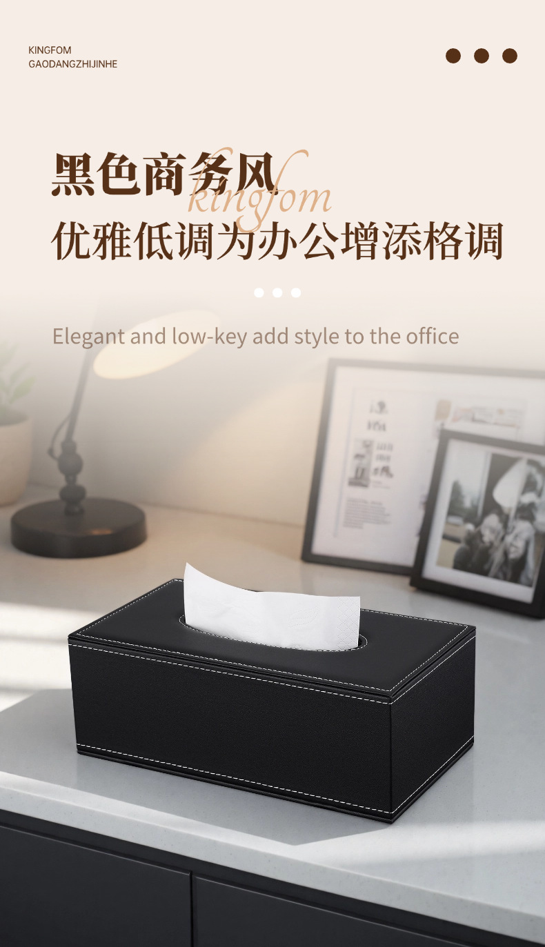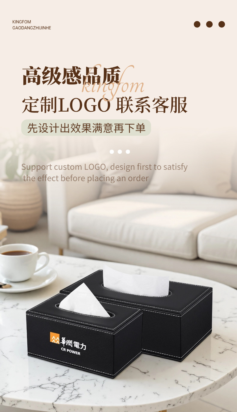 Orden Caja de pañuelos grande de cuero negro simple hotel sala de estar hogar caja de pañuelos universal caja de pañuelos de publicidad