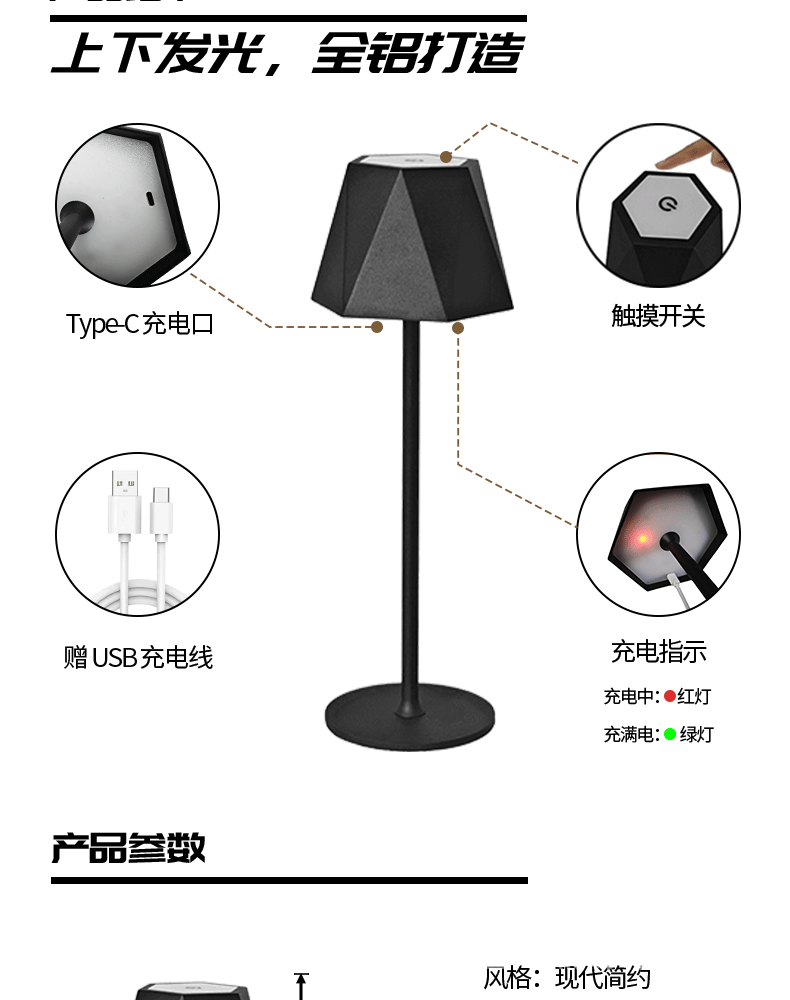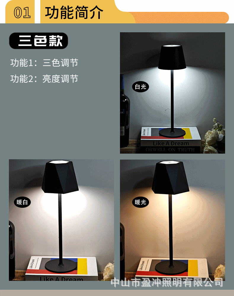 Lámparas de escritorio led de explosión transfronteriza simple retro café atmósfera lámpara de mesa lámpara de mesa touch USB recargable lámpara de escritorio