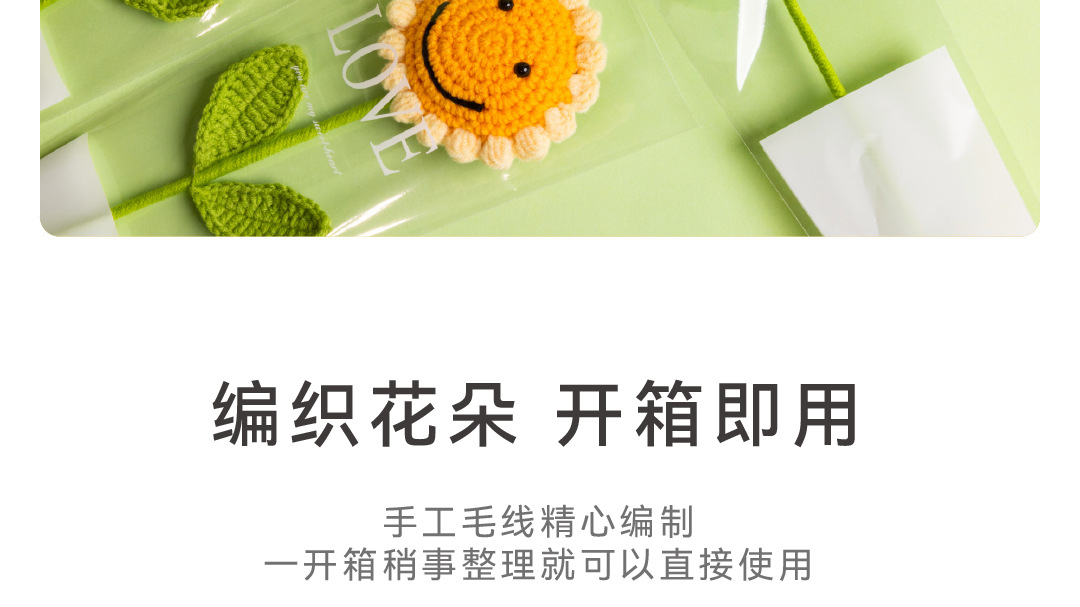 Smiley girasol terminado ramo tejido a mano producto terminado flor eterna Día del Maestro Día del Niño regalo del mercado nocturno puesto
