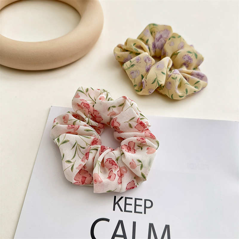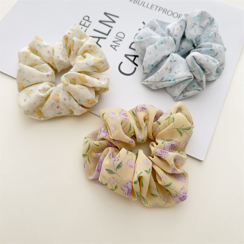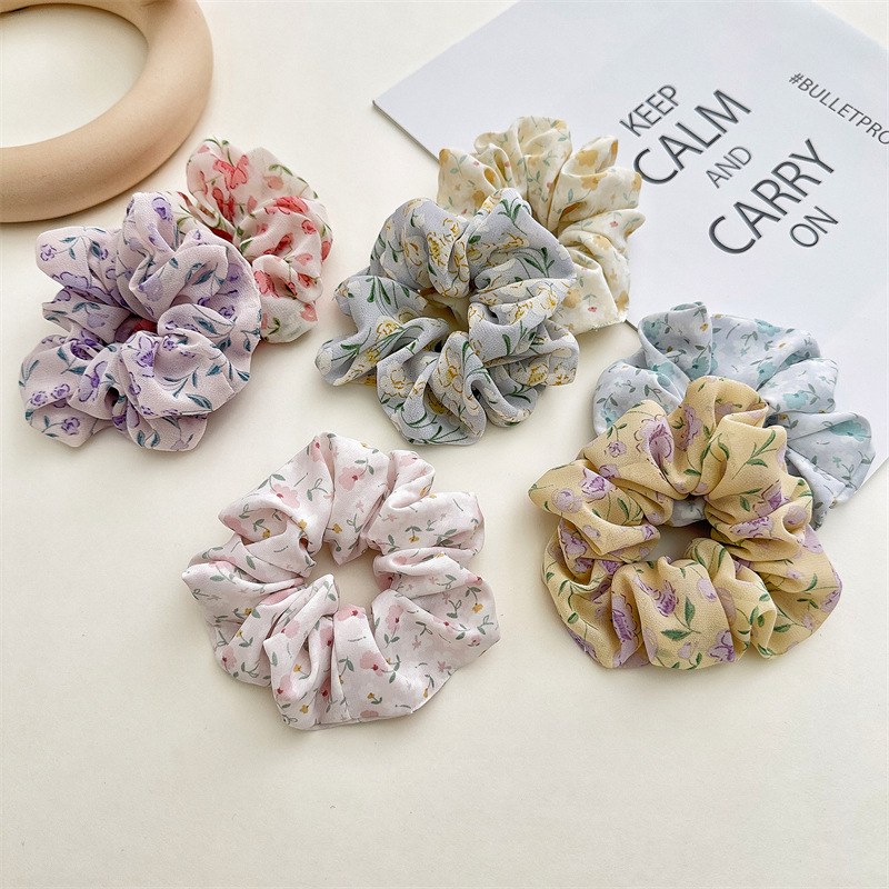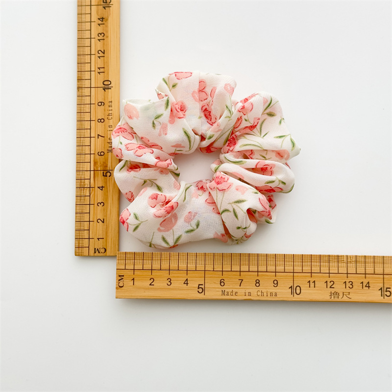 Nueva gasa accesorios para el cabello tela floral pequeño fresco intestino grueso pelo banda chica todo-partido elástico goma banda cabeza cuerda en stock