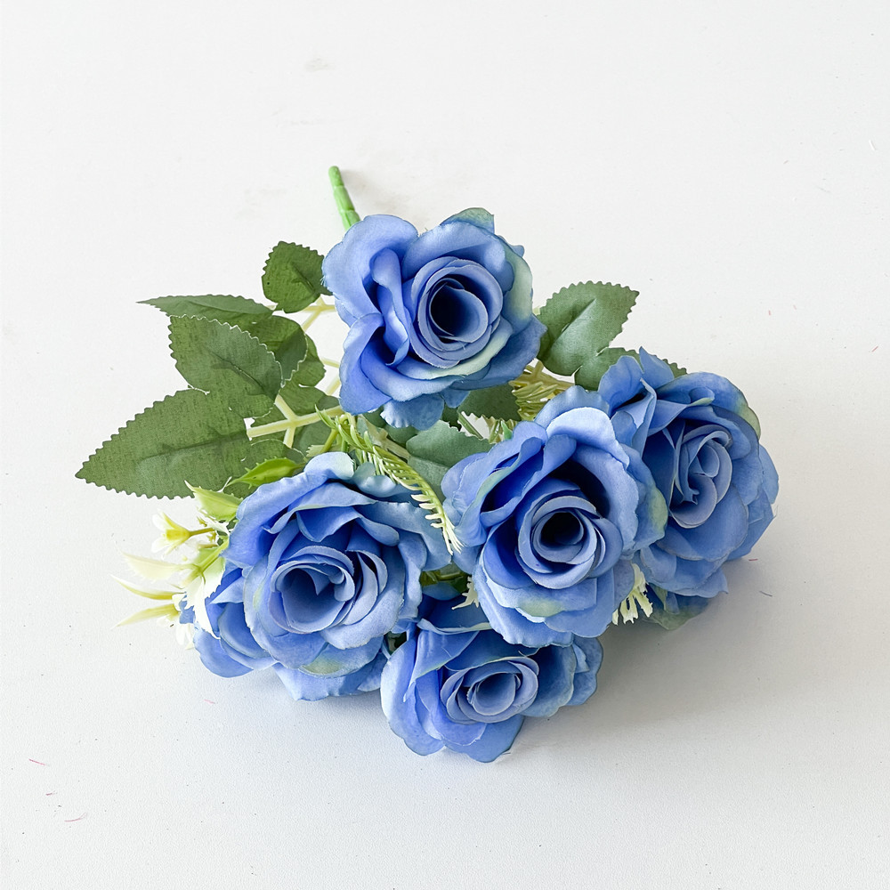 Fábrica al por mayor de estilo europeo 7-cabeza Rosa ramo de flores de seda flor artificial hogar flor decorativa flor falsa flor artificial a prueba real