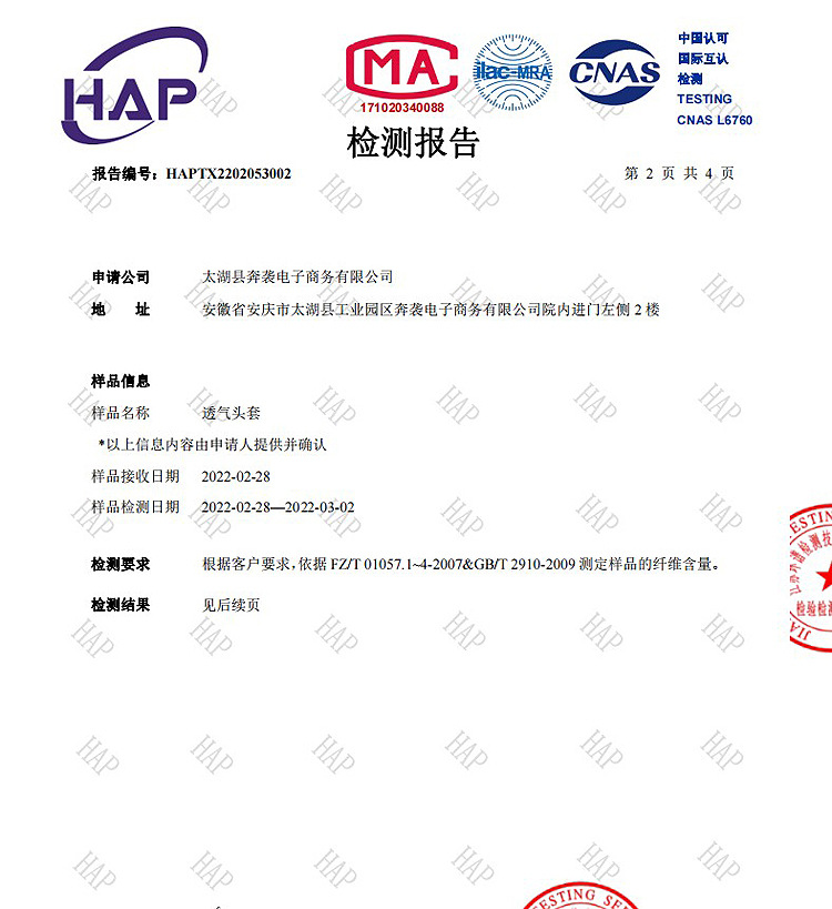 | Informe de inspección de calidad No. | HAPTX2202053002 |