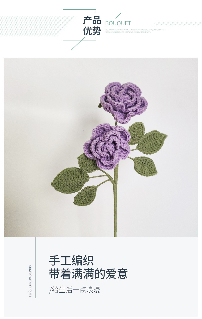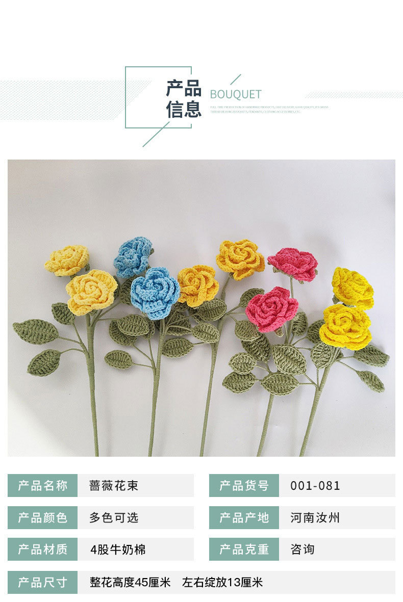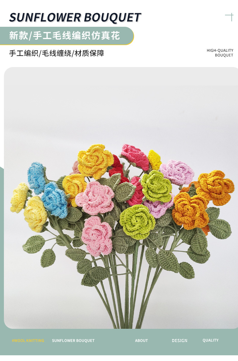 Decoración de pared para el hogar, flores artificiales de cuatro hebras, algodón de leche, flores artificiales de ganchillo, ramo de rosas, ramo de rosas artificiales