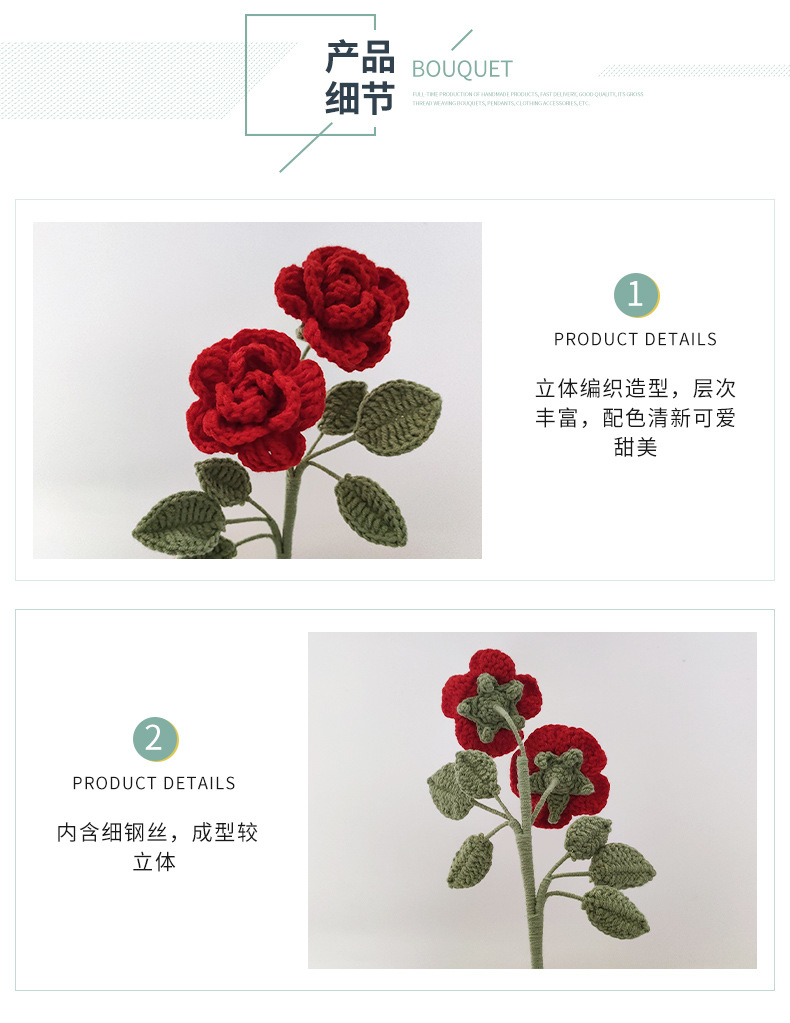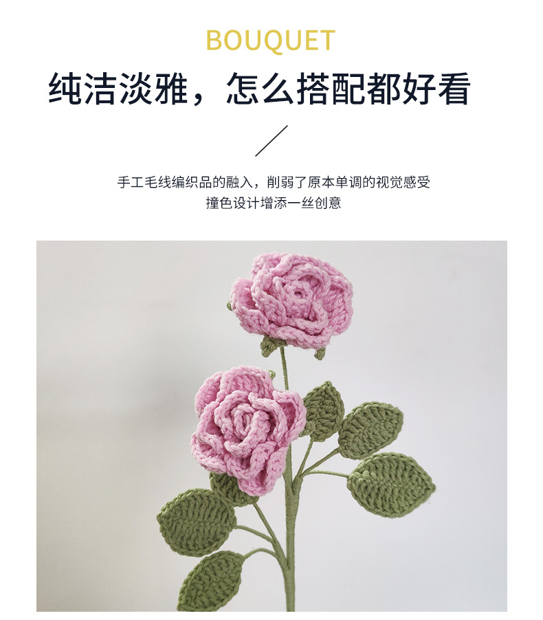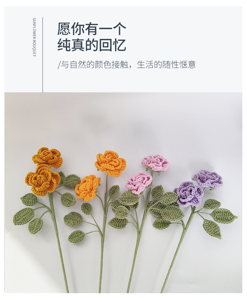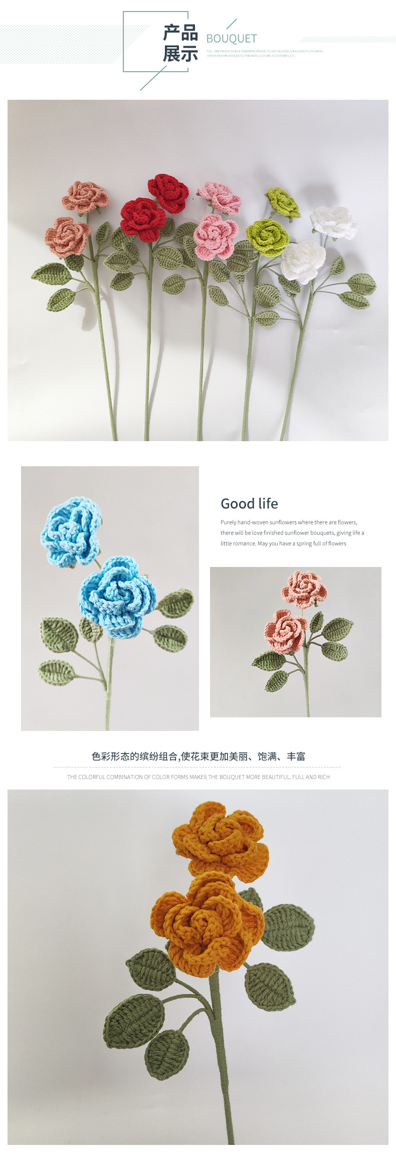 Decoración de pared para el hogar, flores artificiales de cuatro hebras, algodón de leche, flores artificiales de ganchillo, ramo de rosas, ramo de rosas artificiales