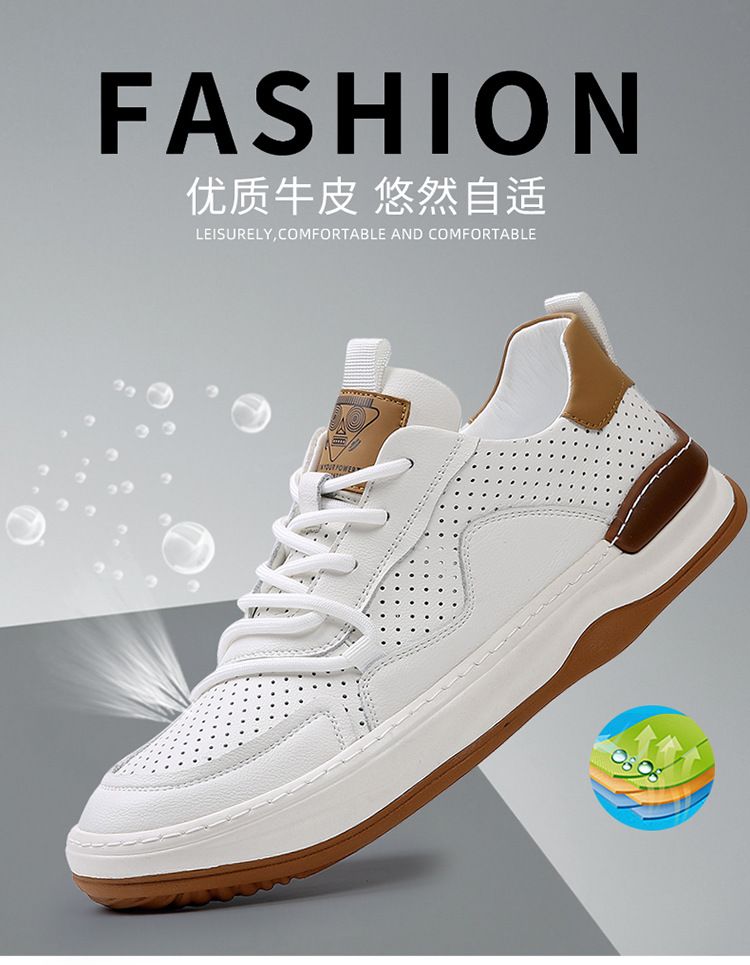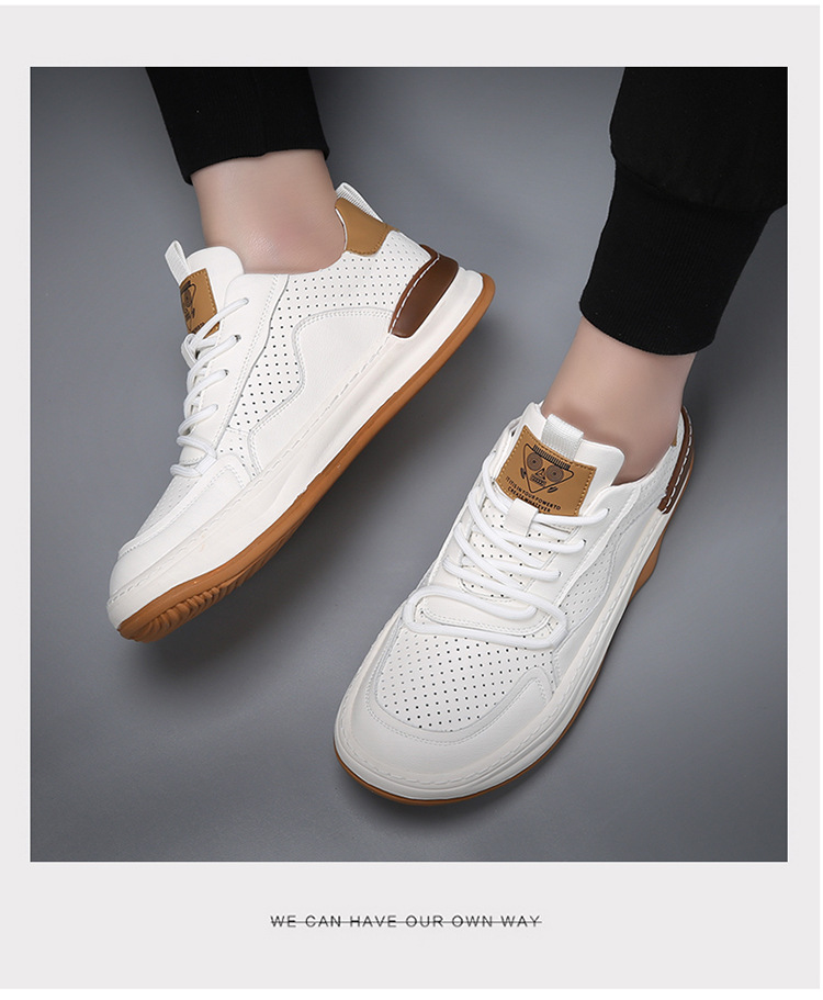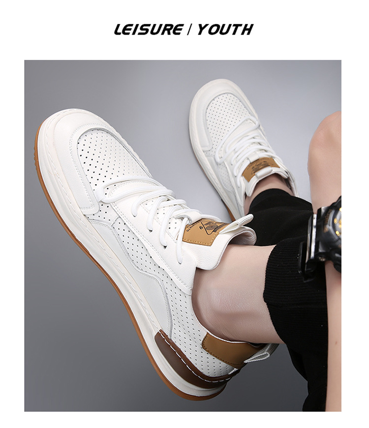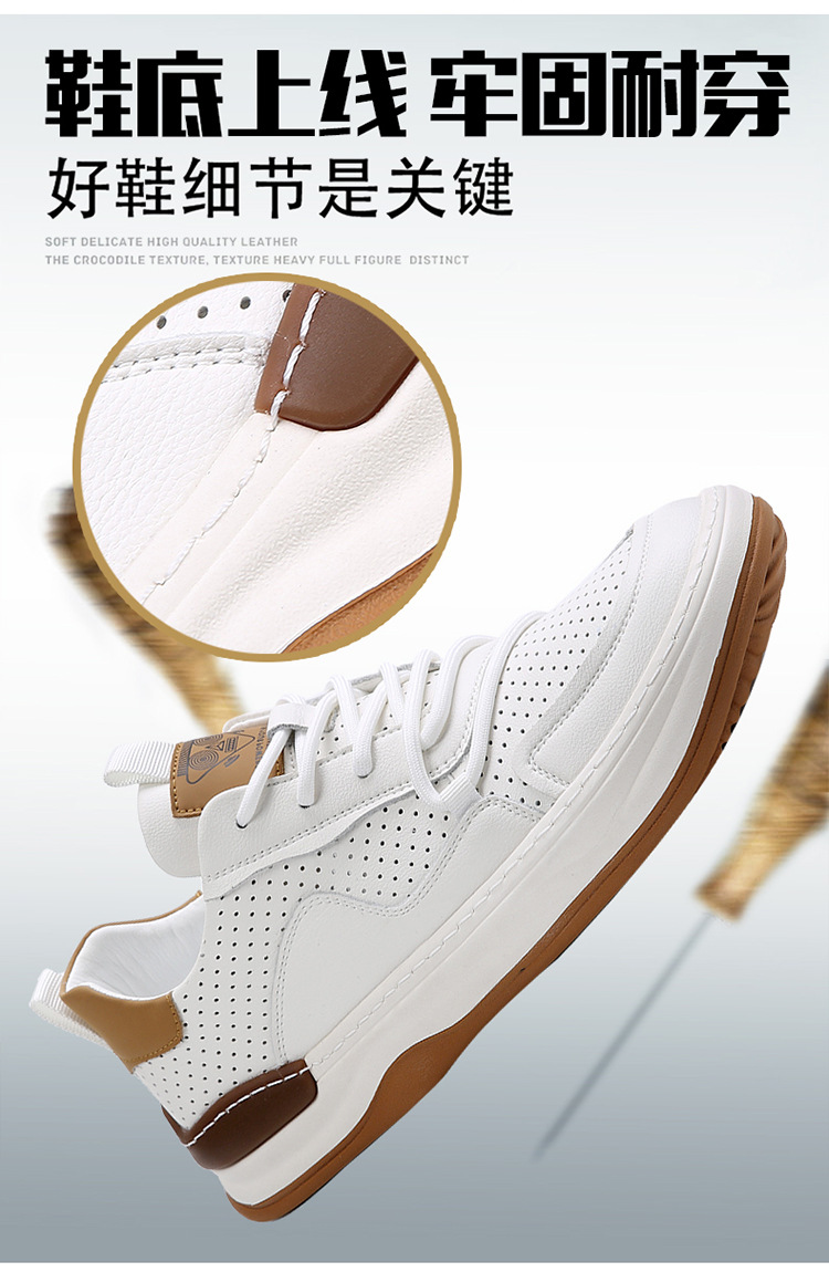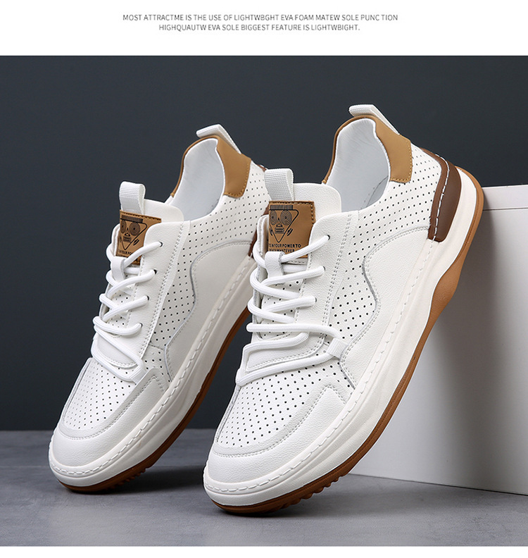 Zapatos de hombre de cuero de estación europea zapatos con agujeros casuales huecos transpirables de suela gruesa para hombres 2025 primavera nuevos zapatos blancos de moda