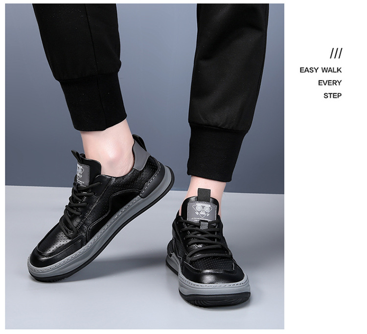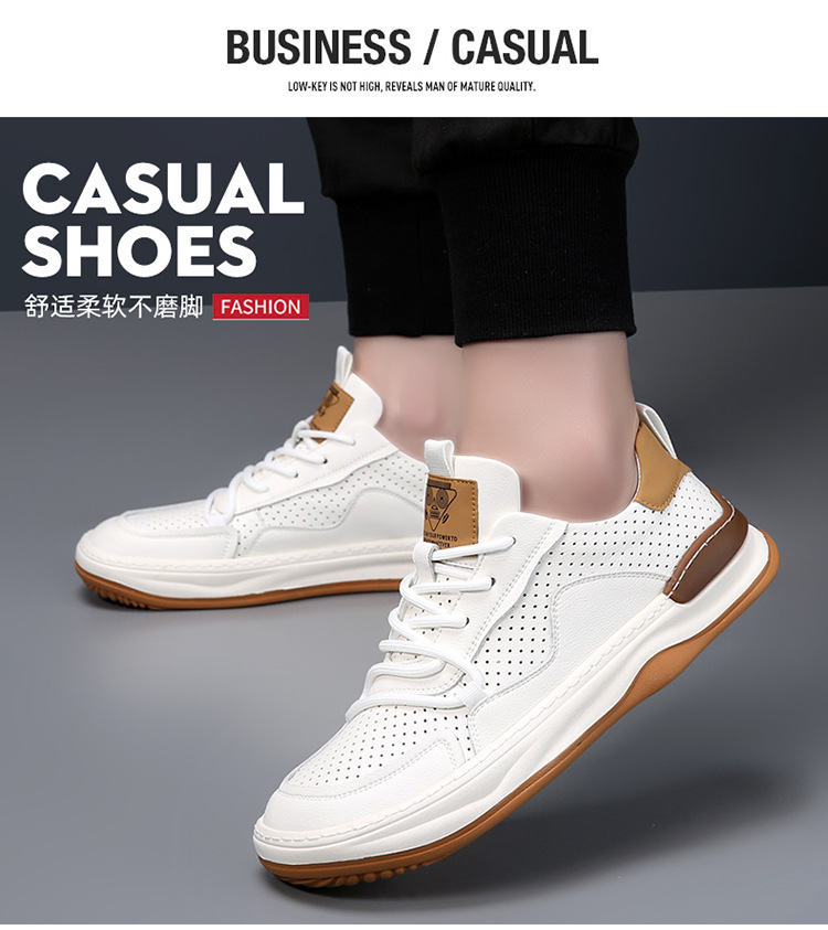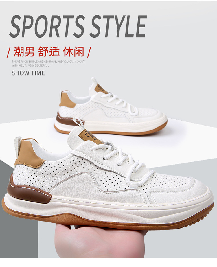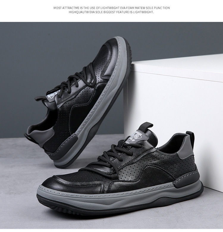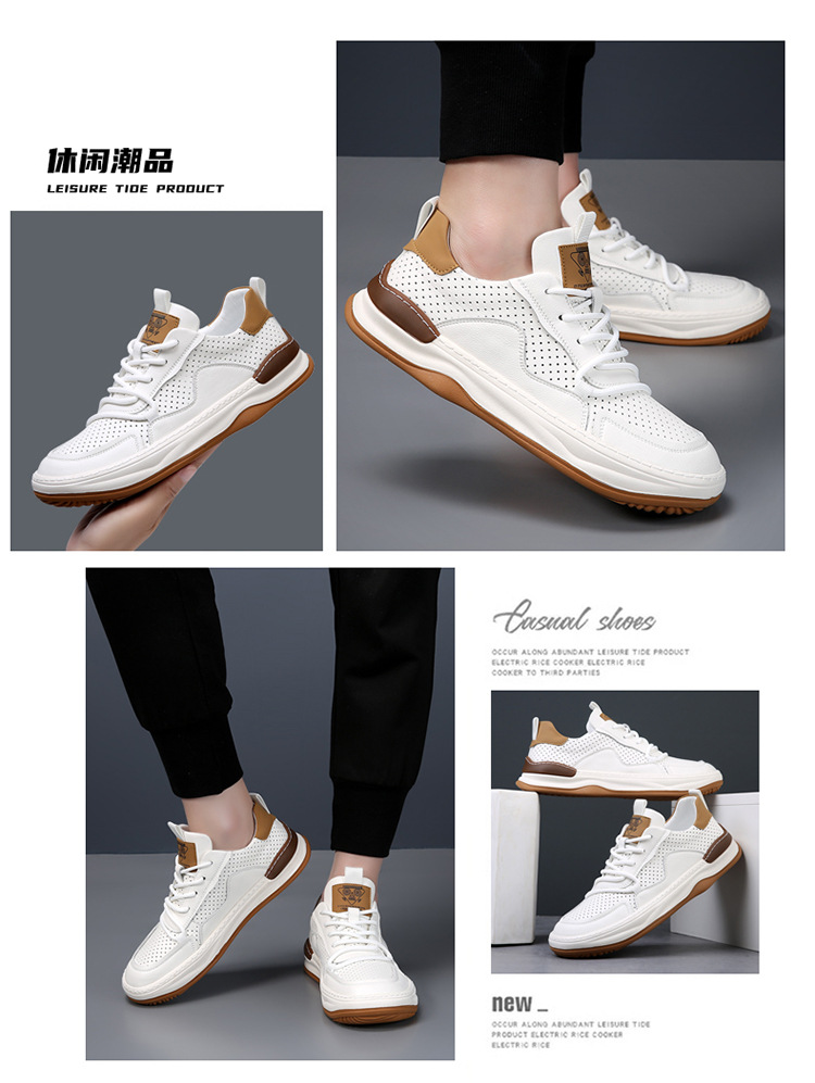 Zapatos de hombre de cuero de estación europea zapatos con agujeros casuales huecos transpirables de suela gruesa para hombres 2025 primavera nuevos zapatos blancos de moda