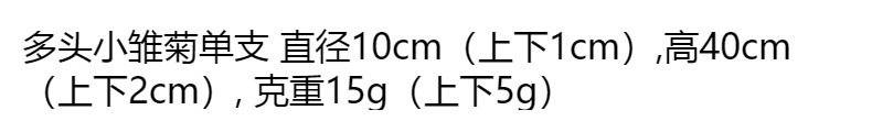 | Colores | Margarita pequeña de múltiples cabezas terminada blanca,Margarita pequeña de múltiples cabezas terminada rosa,Margarita pequeña de múltiples cabezas terminada naranja,Pequeña margarita de múltiples cabezas terminada azul |