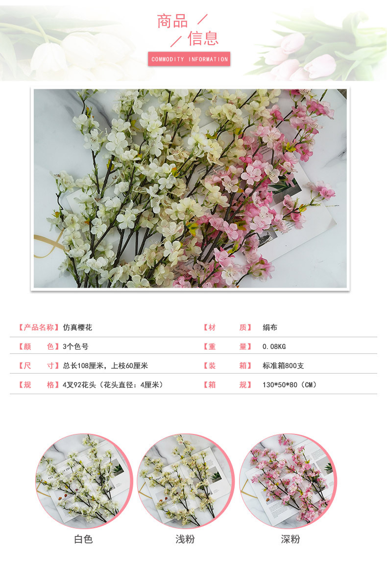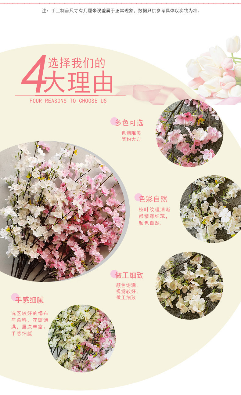 Fábrica al por mayor flor artificial flor de cerezo artificial decoración de la boda flor artificial salón decoración ingeniería suave ramo de flores de seda