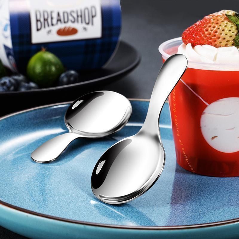 Creativo mango corto cuchara pequeña cuchara de helado de arroz de acero inoxidable cuchara vajilla portátil para viajes cuchara para niños lindos