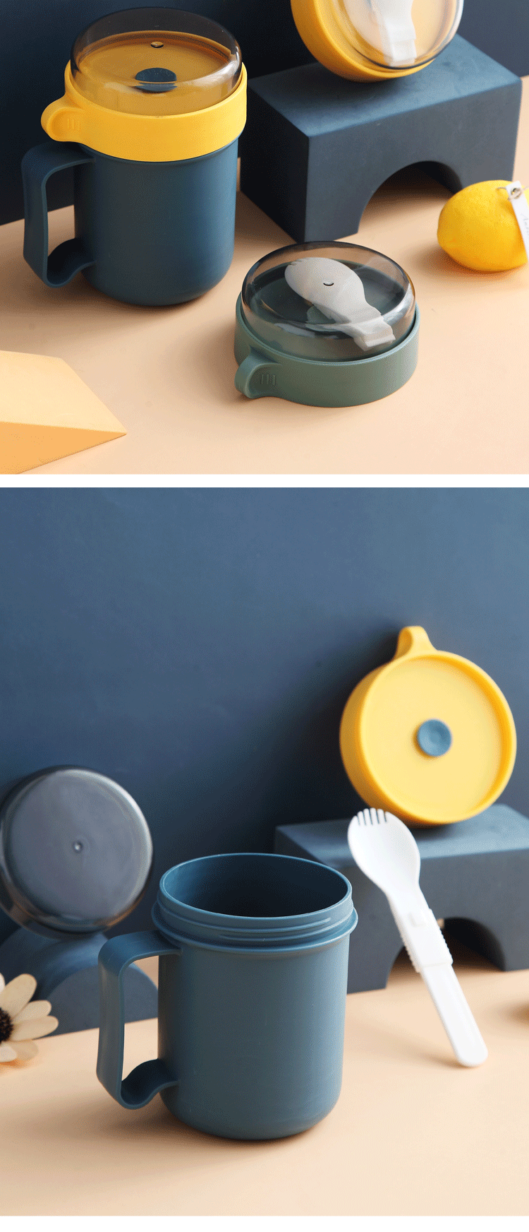 Taza de desayuno de avena de estilo japonés de plástico horno de microondas con tapa calefacción taza de sopa de leche mango portátil vajilla fábrica al por mayor