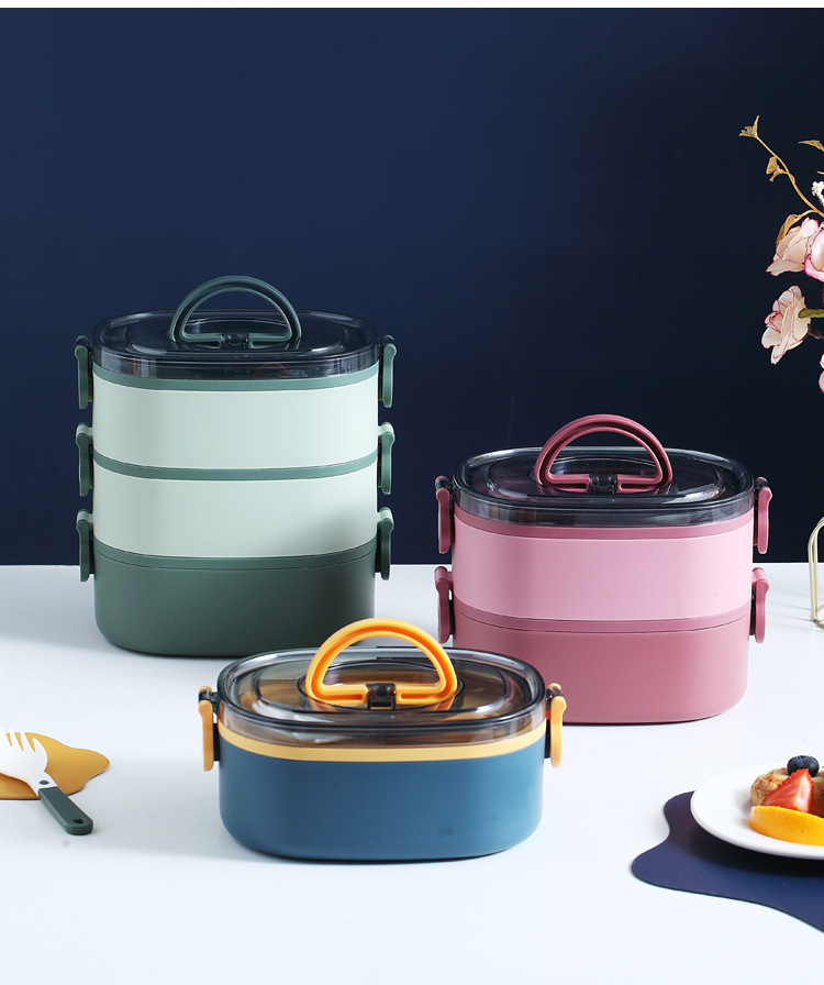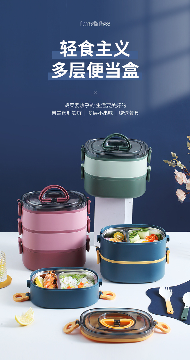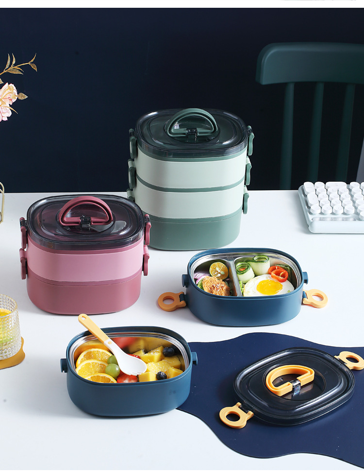 Multi-capa de gran capacidad caja de almuerzo portátil de acero inoxidable 304 barril aislado estudiante de cuello blanco caja de almuerzo vajilla