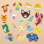 Pegamento de bordado por computadora, planchado, pegatinas de parche de dibujos animados de animales cosidos, pegatinas de tela de encaje personalizadas
