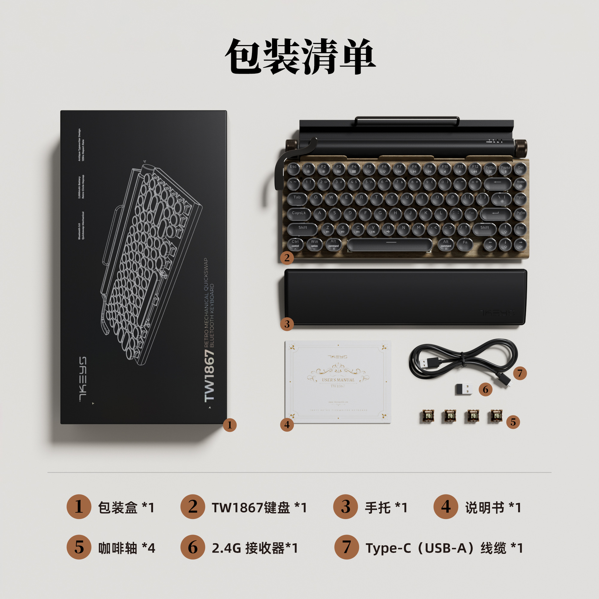 Dot retro máquina de escribir Teclado mecánico punk keycap teléfono móvil tableta MAC Bluetooth real Teclado mecánico transfronterizo