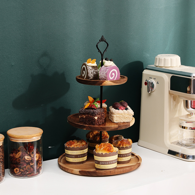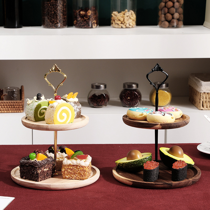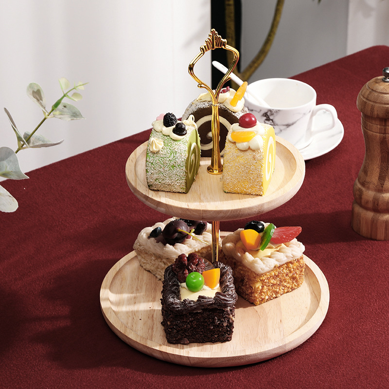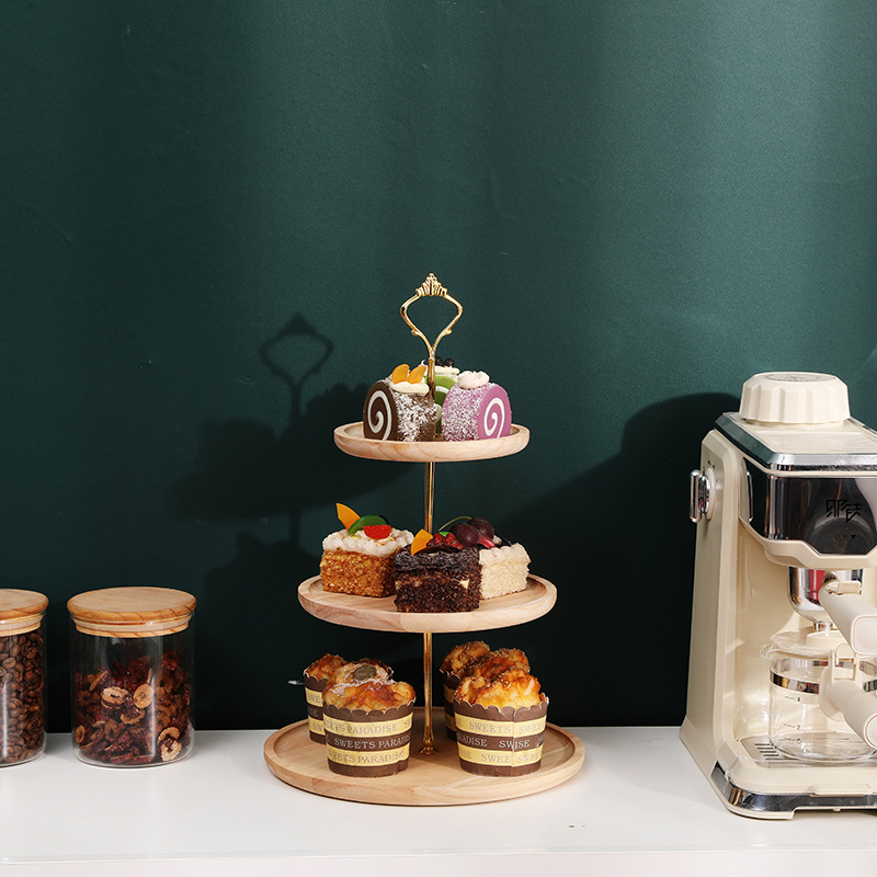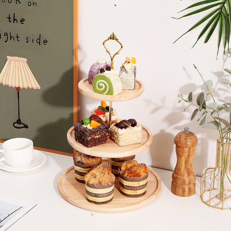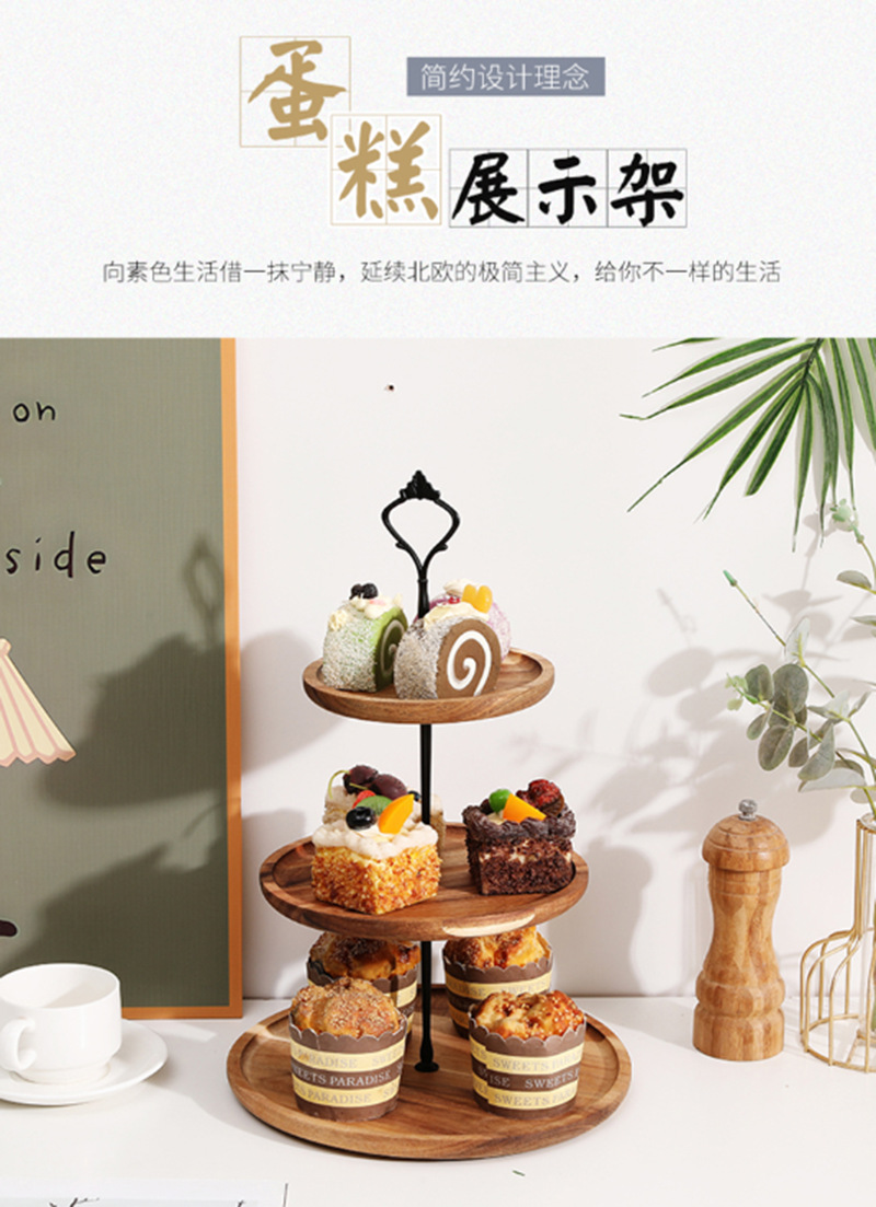 Mesa de postre de madera maciza decoración soporte de la torta soporte de exhibición plato de fruta plato de merienda bandeja de múltiples capas plato de fruta estante de madera