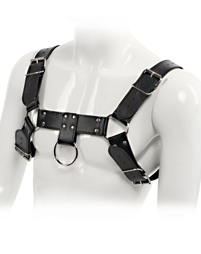 Arnés de correa de bondage, juguetes eróticos transfronterizos, arnés de pecho SM para hombres, arnés de pecho erótico de cuero para adultos de alta gama.