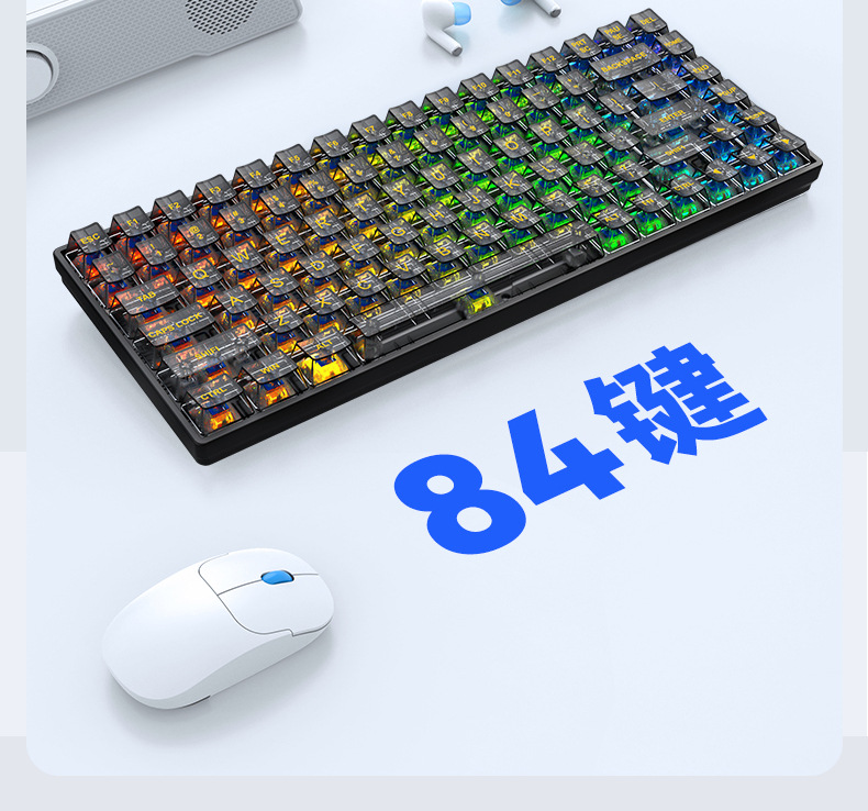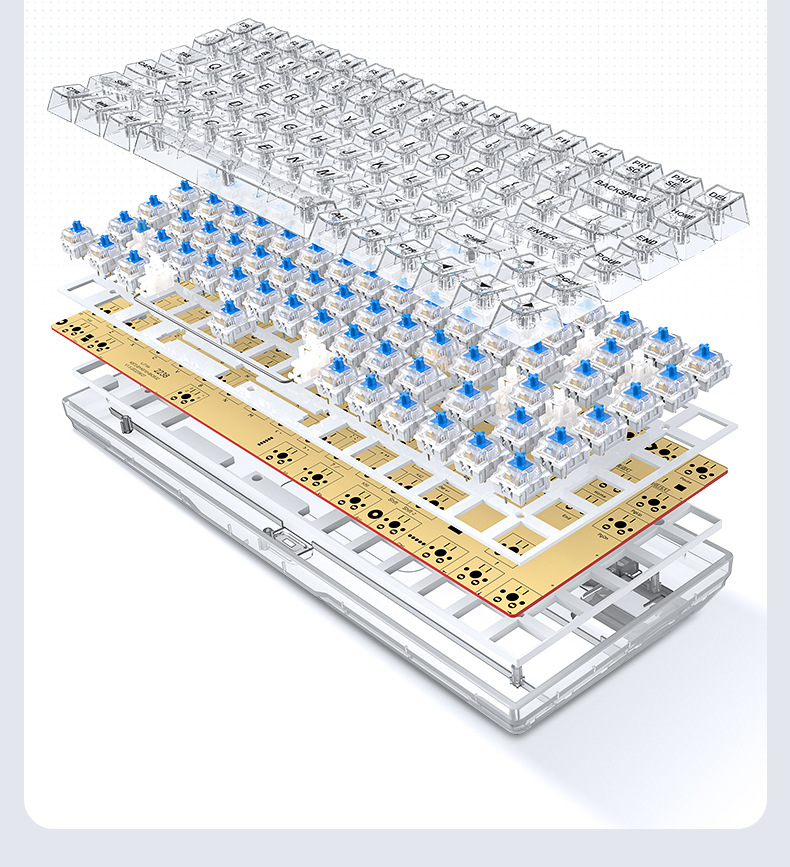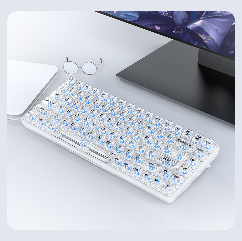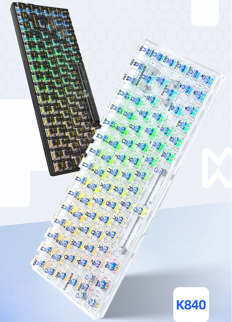 Crack k840 teclado transparente enchufe caliente personalizado ruso Oficina luminosa juego e-sports Teclado mecánico con cable