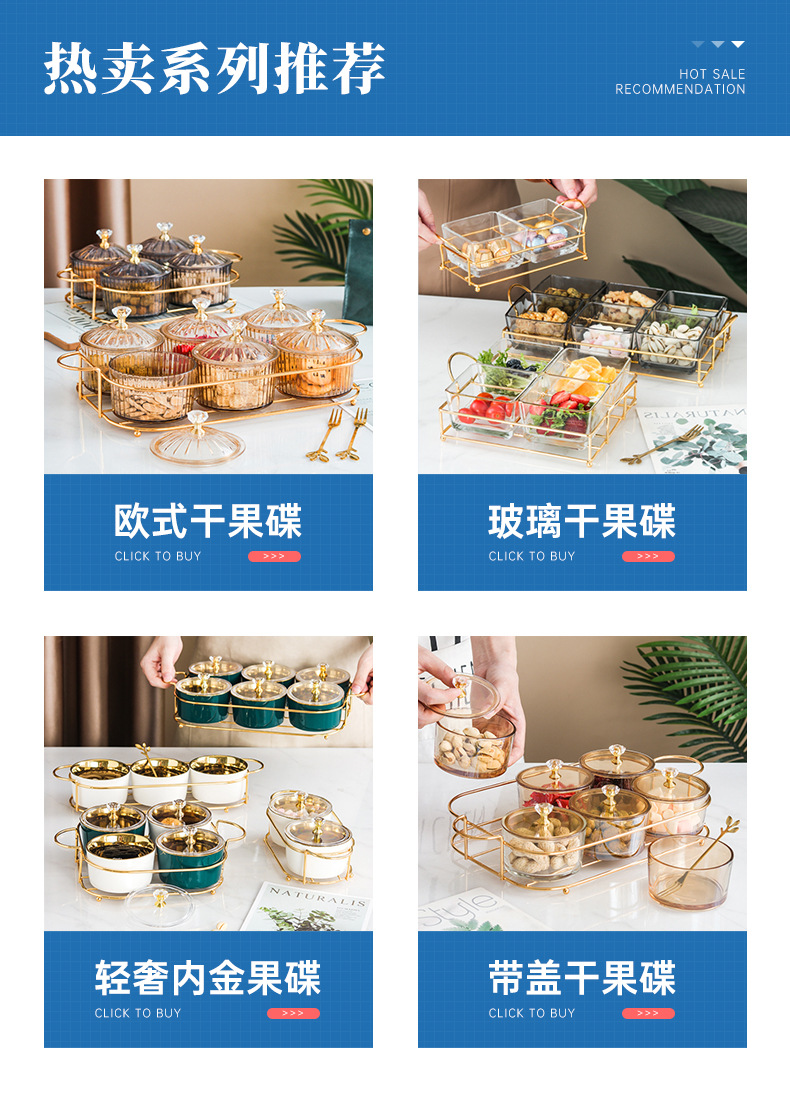 Nórdico plato de frutas secas plato de merienda plato de fruta redondo transparente plato de rejilla de postre caja de Arte de hierro con tapa