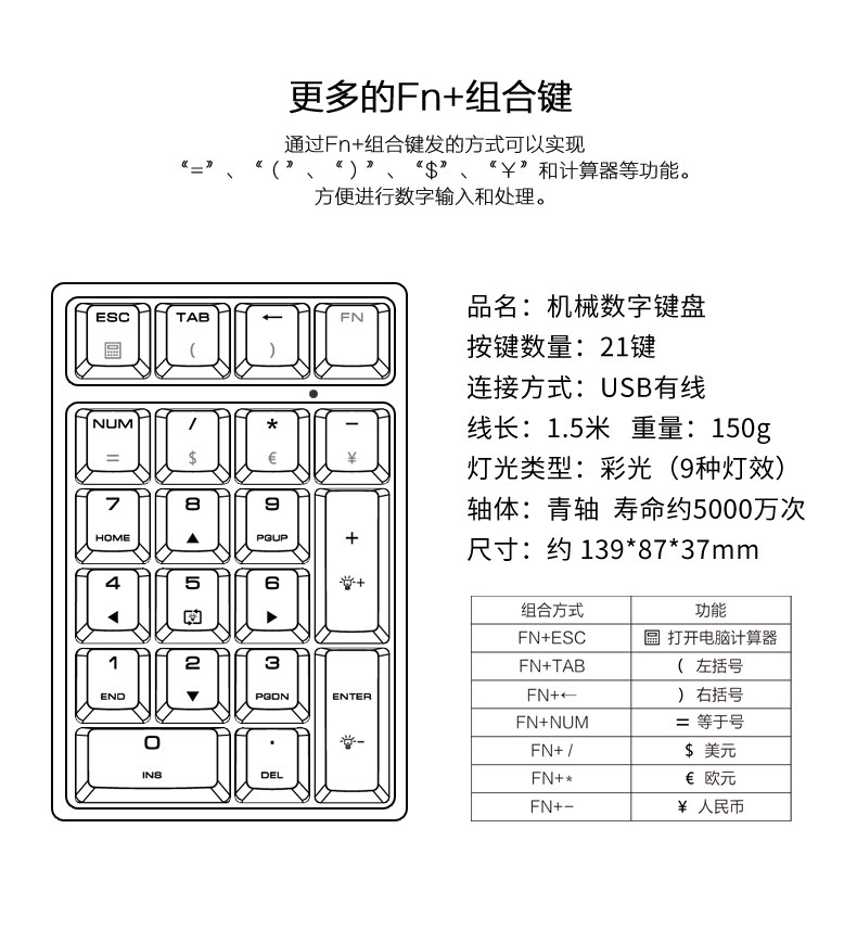 Retroiluminación multifuncional atada con alambre K21 del color del RGB del botón del teclado digital mecánico popular caliente de la venta para la oficina y el negocio
