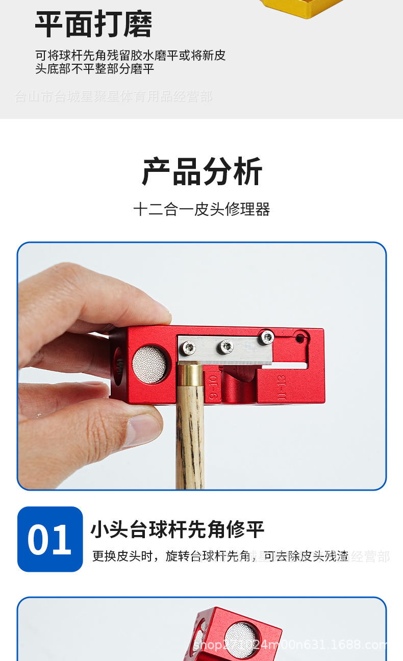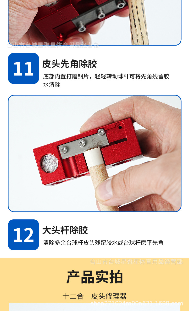 12 en uno barra de billar de aleación de aluminio reparador de cabeza de cuero cambiador de cabeza de billar herramienta de barra herramienta de barra