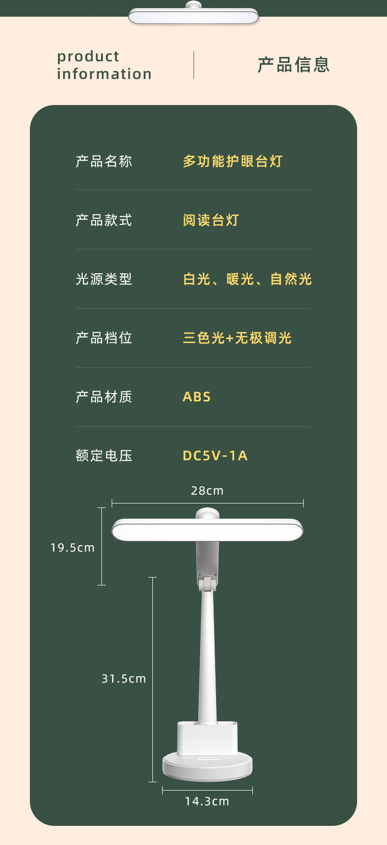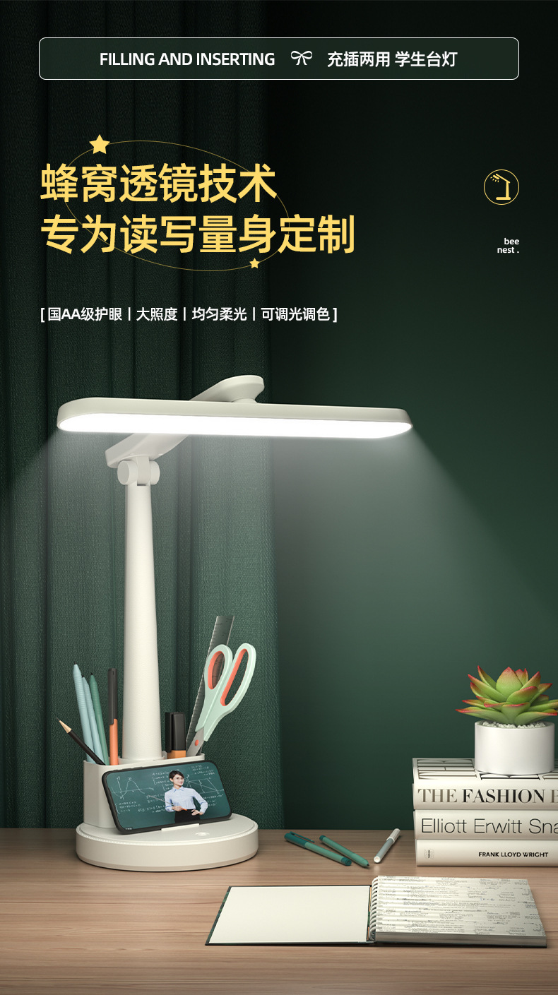 Lámpara de escritorio con protección ocular para aprendizaje de estudiantes, led transfronterizo, creativo, para dormitorio, lectura, portalápices, luz nocturna