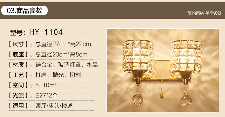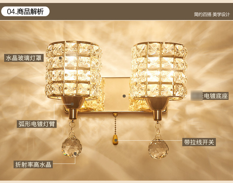 Simple moderna de cristal de hierro lámpara de pared dormitorio lámpara de noche LED impermeable creativa lámpara de Zhongshan iluminación