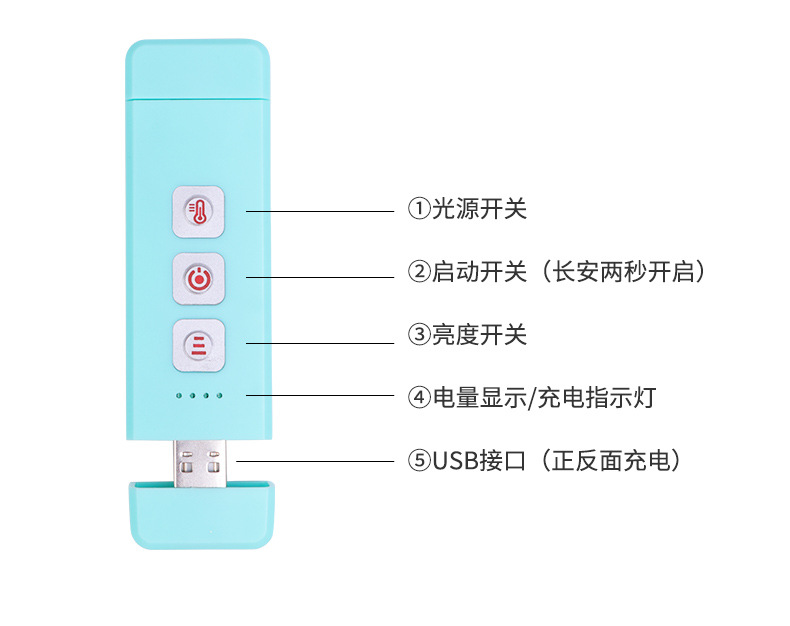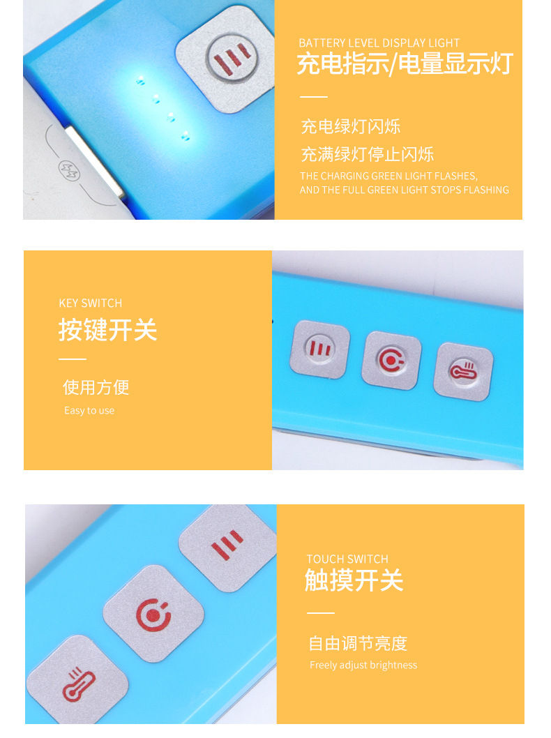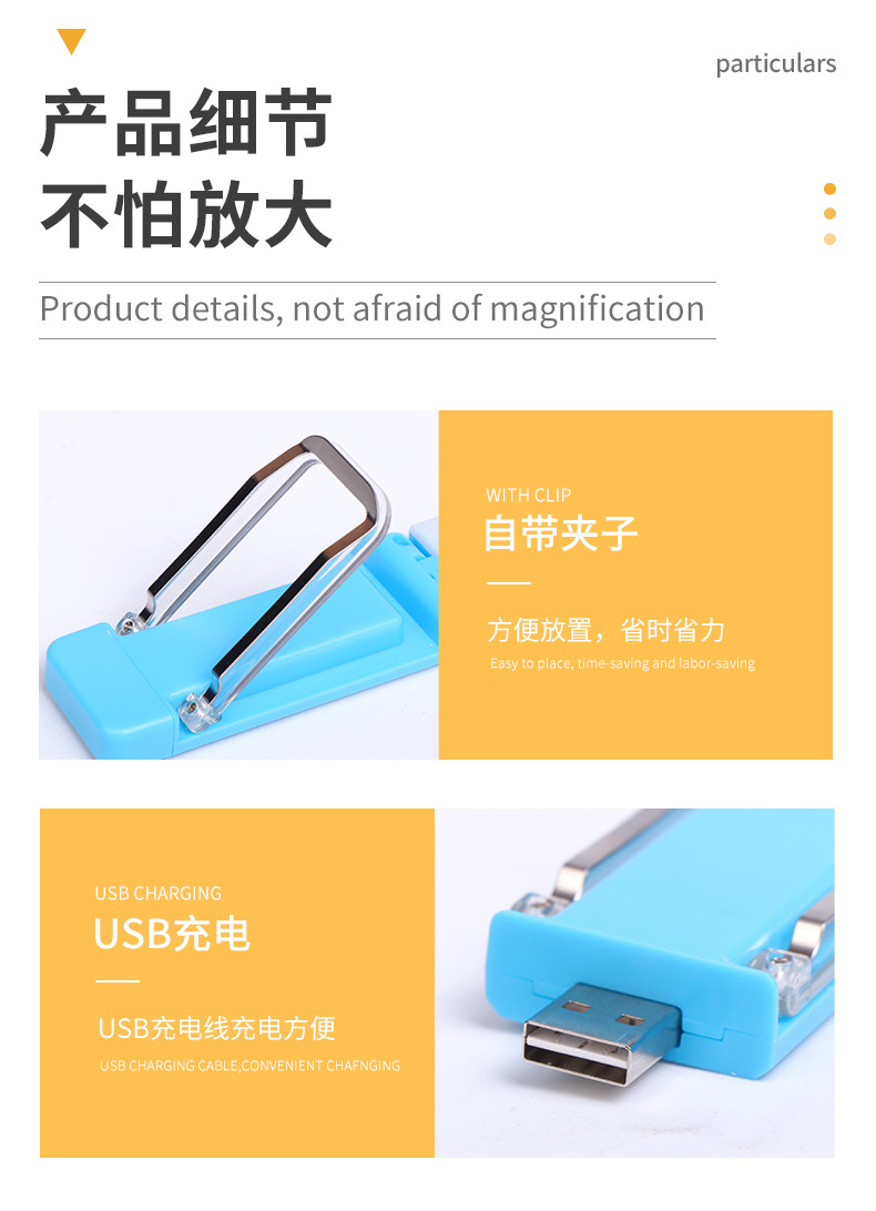 3 Interruptor de carga USB luz de lectura LED Tarjeta de libro de luz con clip de luz cálida luz blanca ajustable marcador portátil