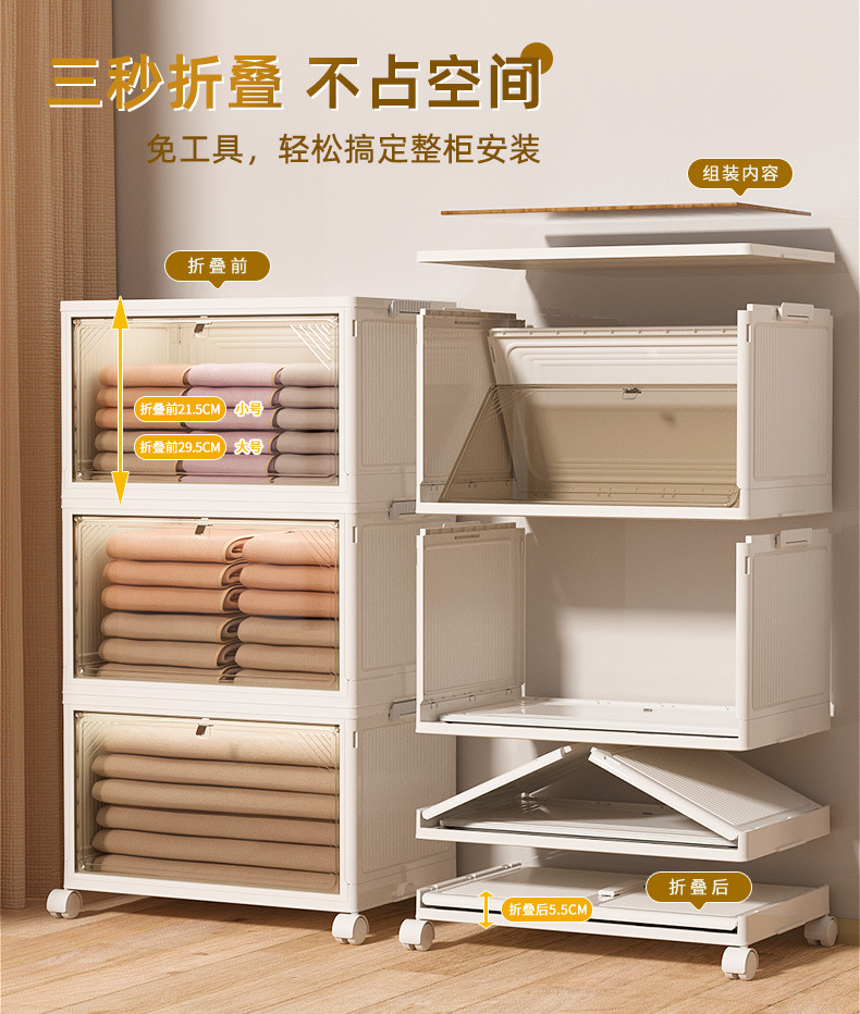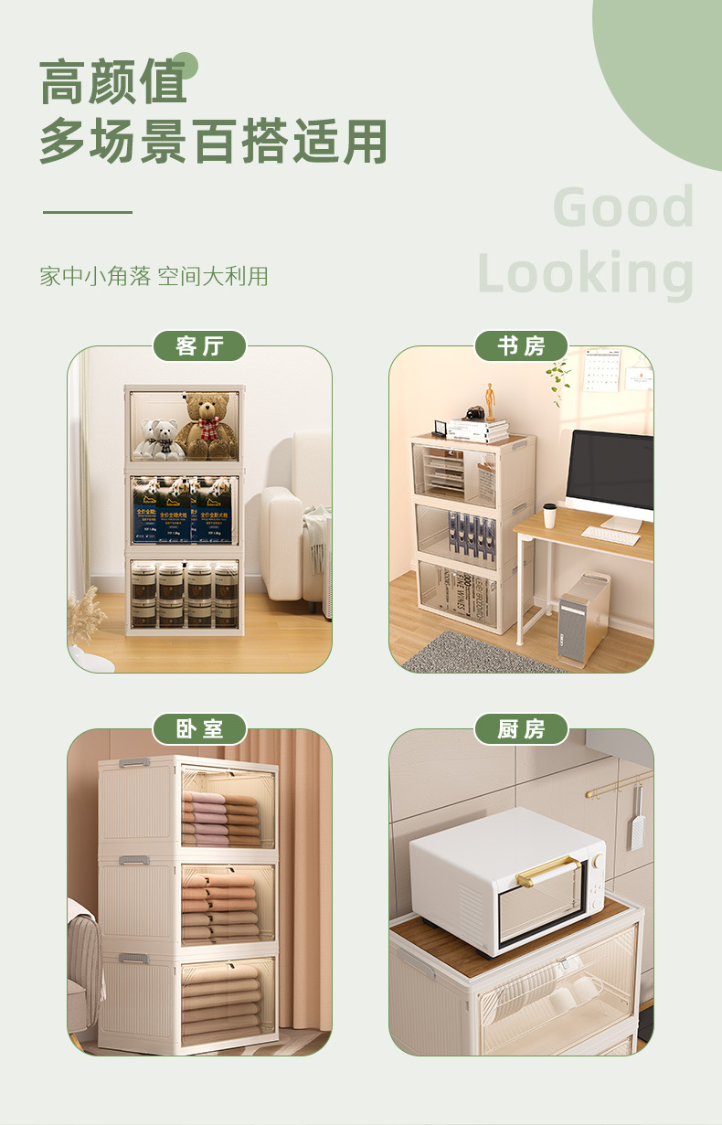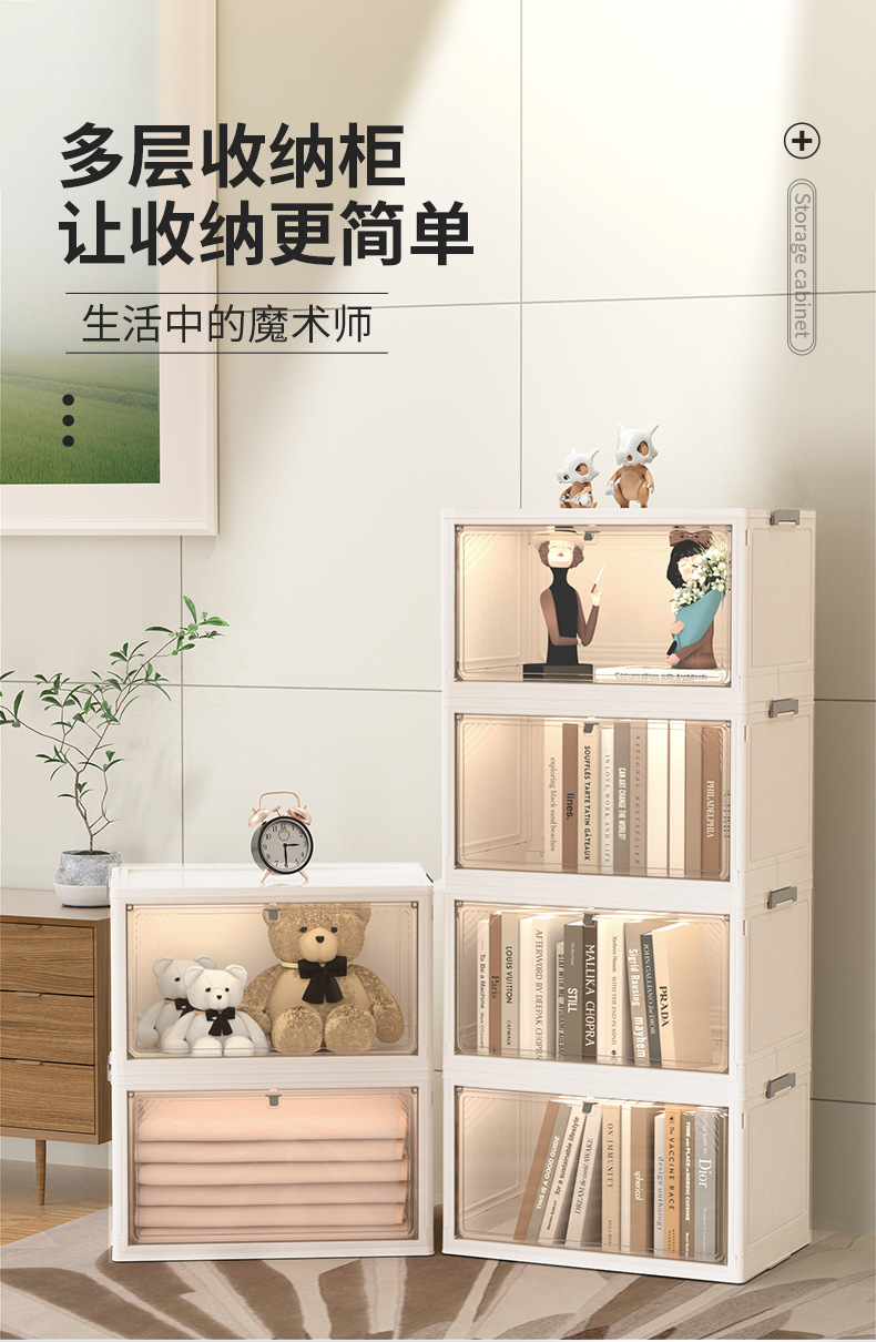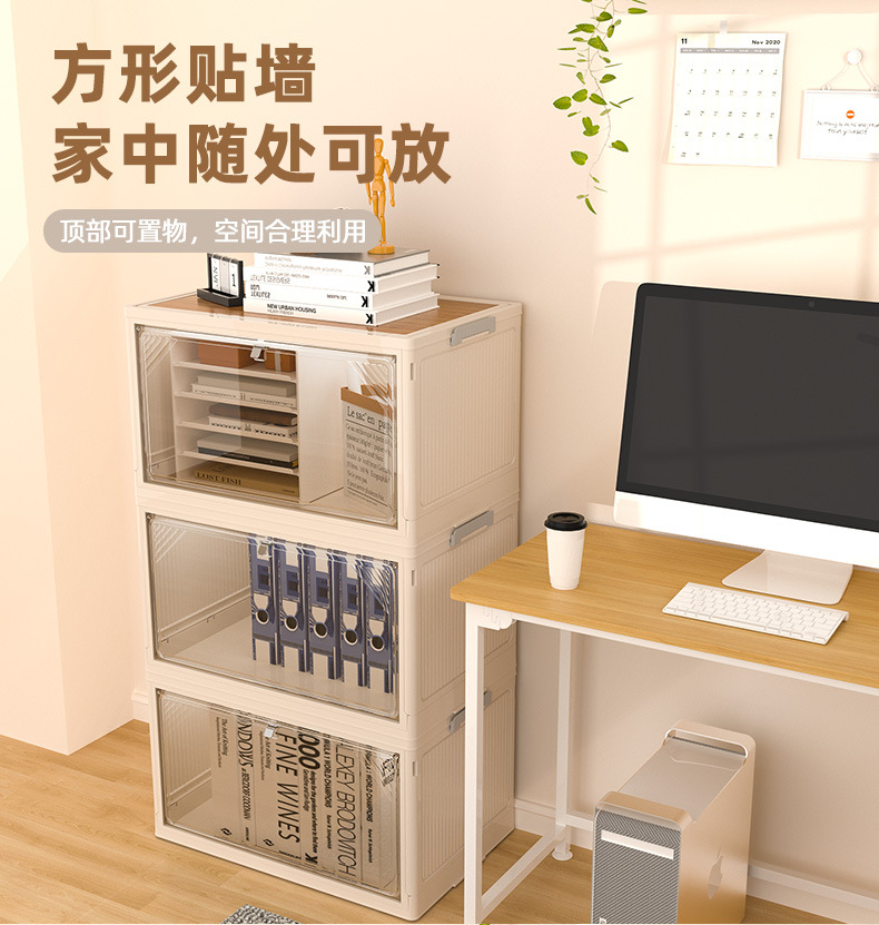 Caja de almacenamiento de compra de desbordamiento, gabinete de almacenamiento plegable sin instalación para oficina, gabinete de almacenamiento coreano multiusos de gran capacidad