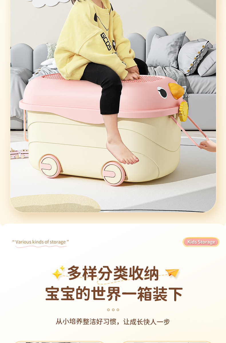 Caja de almacenamiento de juguetes para niños lindos hogar ropa de bebé bloques de construcción caja de organización con polea libro de aperitivos de gran capacidad