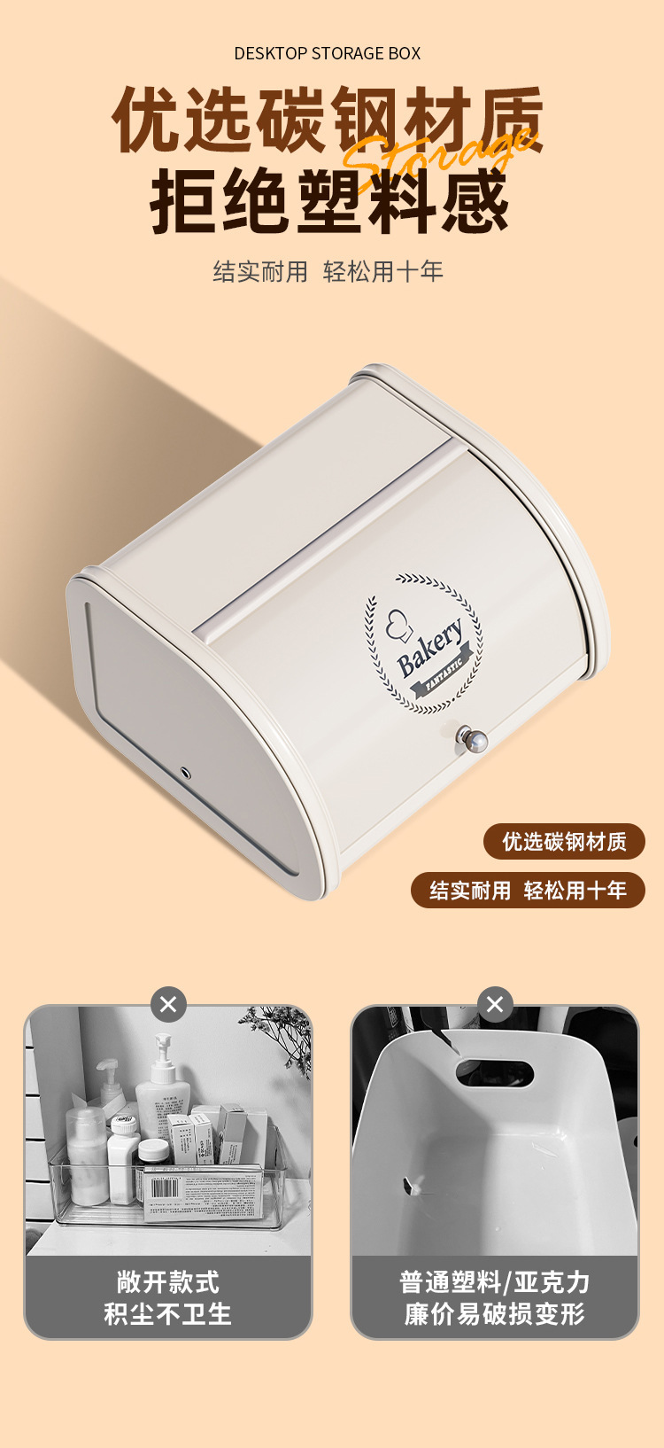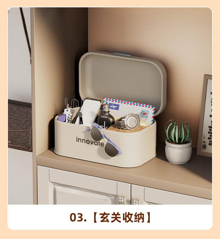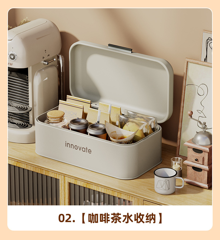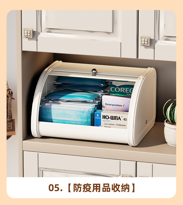 Caja de pan a prueba de polvo sala de estar dormitorio caja de almacenamiento de alta gama Flip caja de hierro caja de almacenamiento de máscara