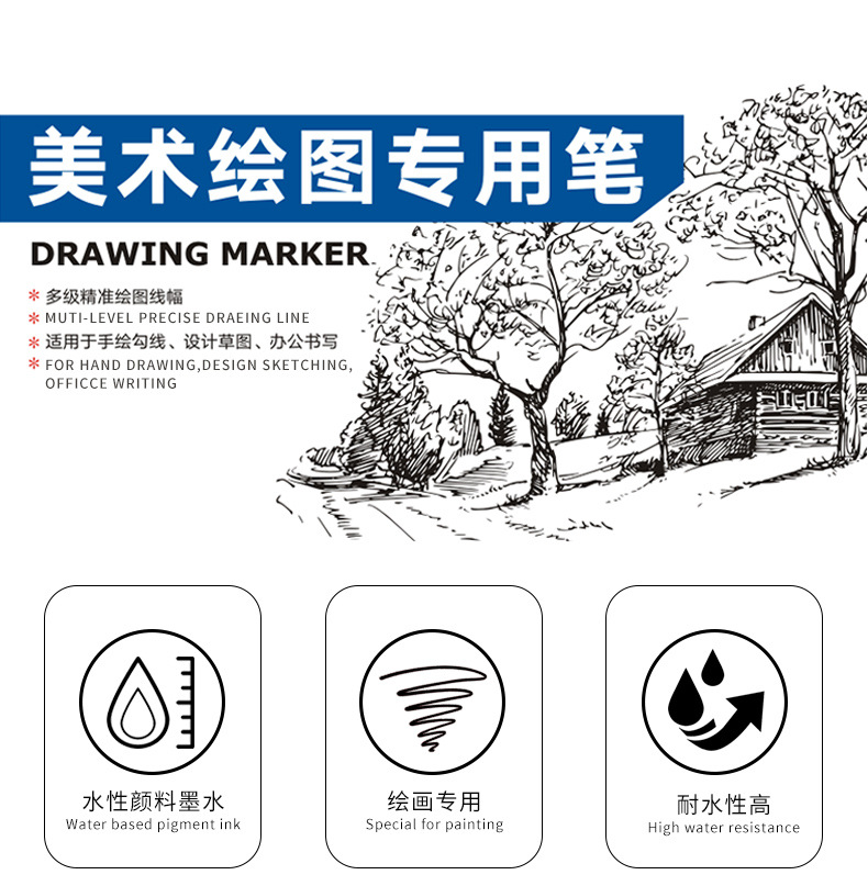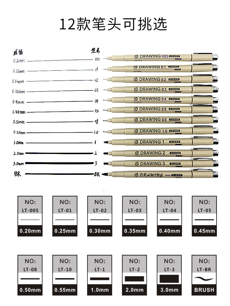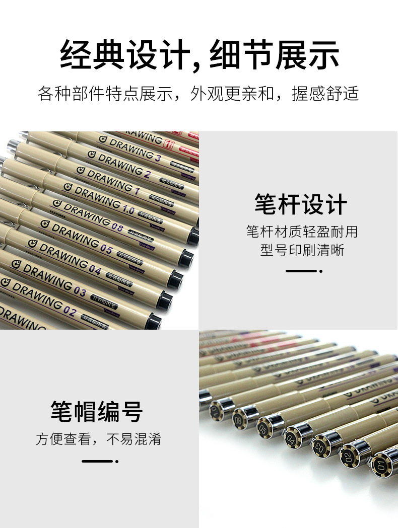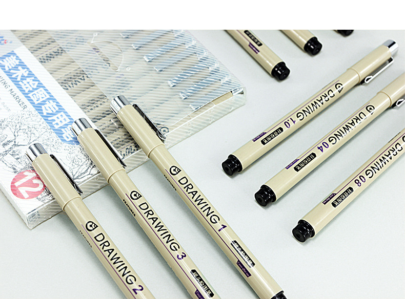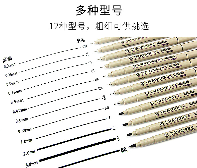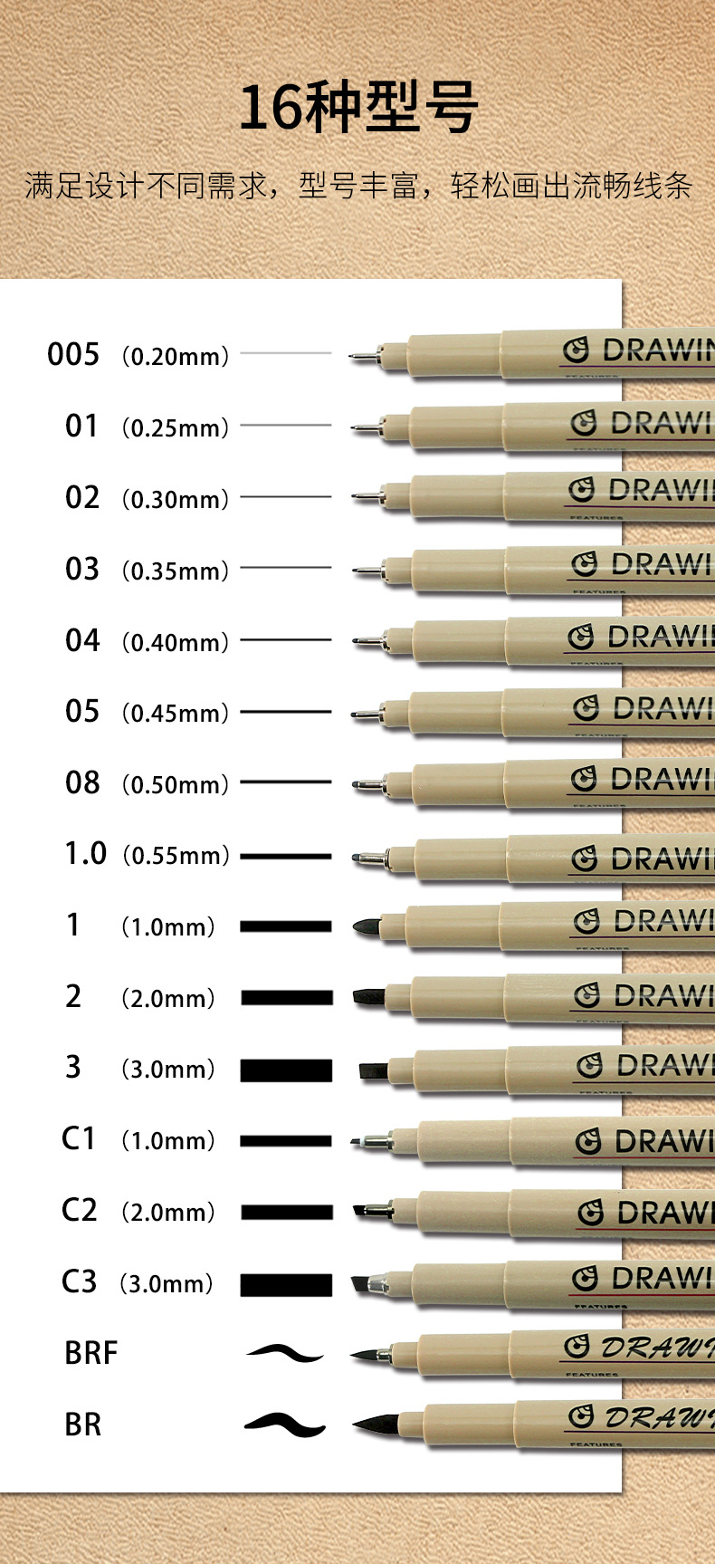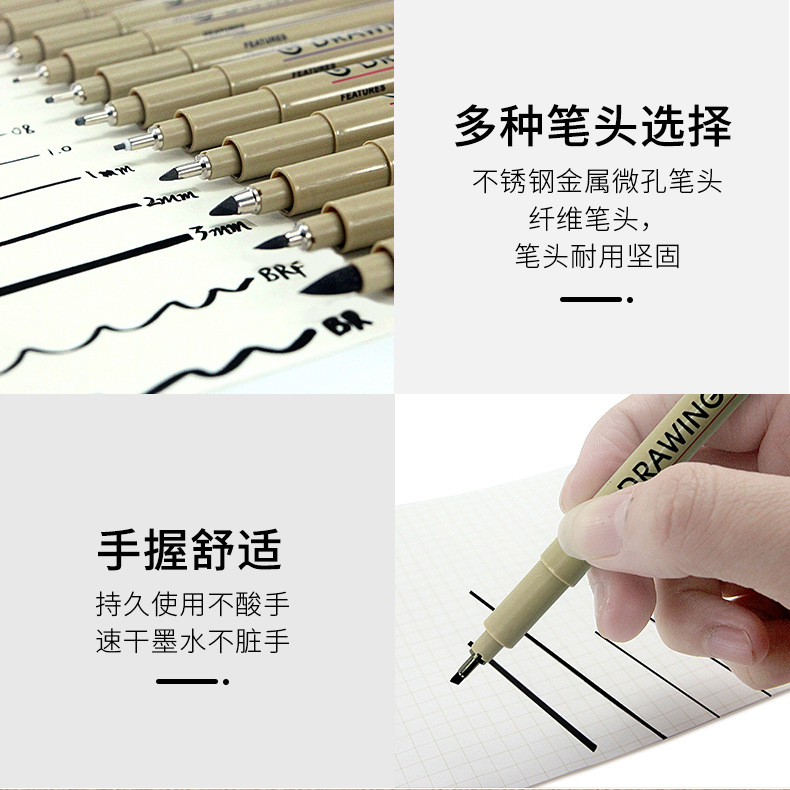 Aguja pluma flor de cerezo mismo gancho impermeable pluma dibujo pluma pintada a mano diseño arte boceto tubo de aguja negro 12 sets