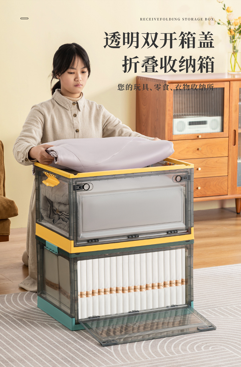 Caja de almacenamiento hogar plegable caja transparente armario ropa edredón caja de almacenamiento juguete merienda caja de almacenamiento de plástico