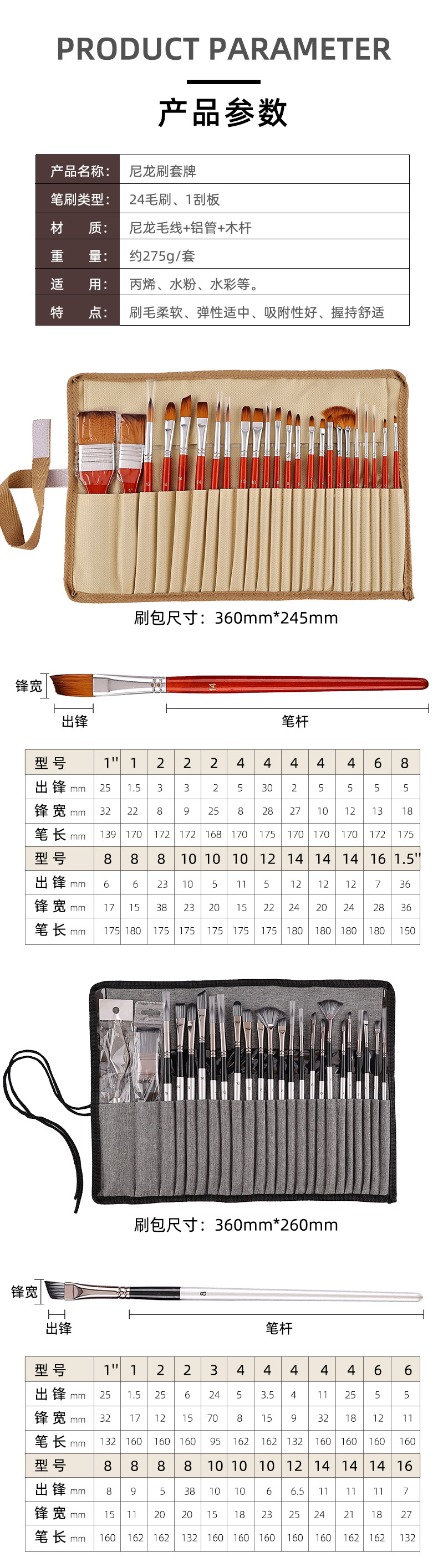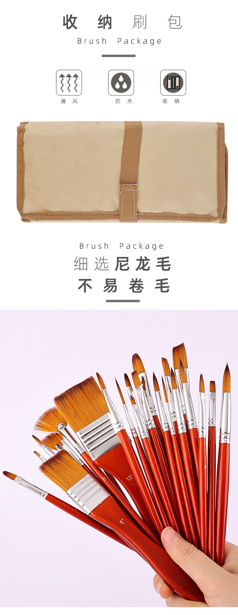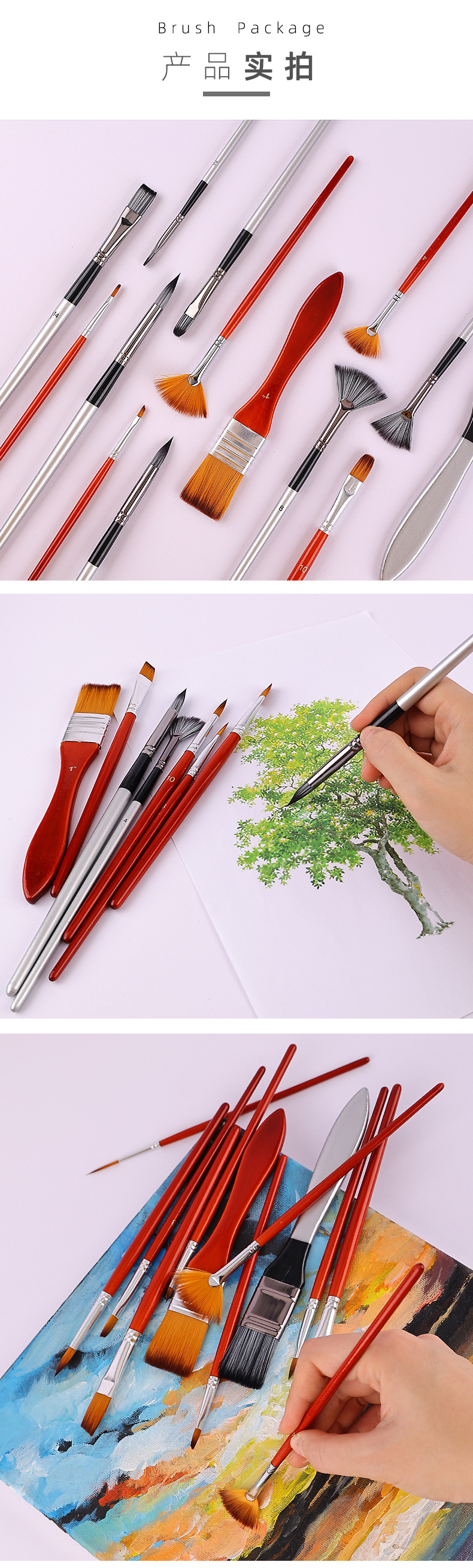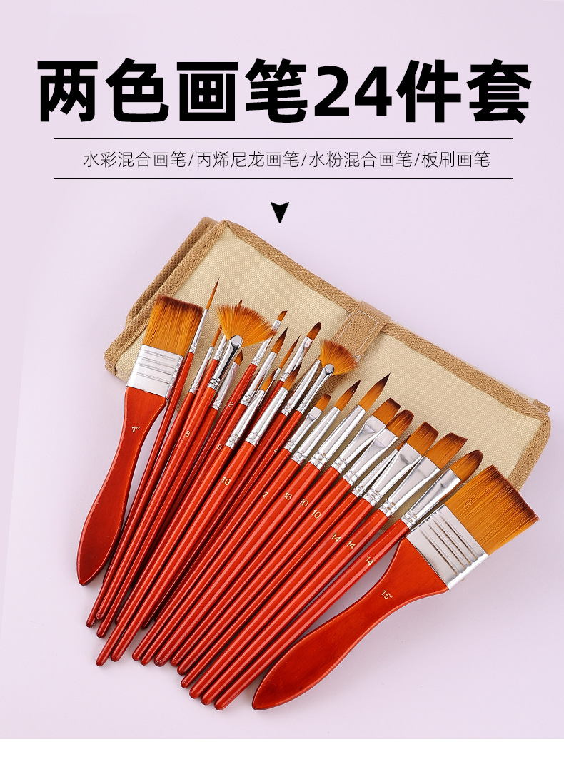 Cross-border nuevo gouache pluma de pintura acrílica set venta al por mayor de 24 piezas de lana de nylon cepillo de pintura en forma de abanico pluma pintura al óleo cepillo de tablero