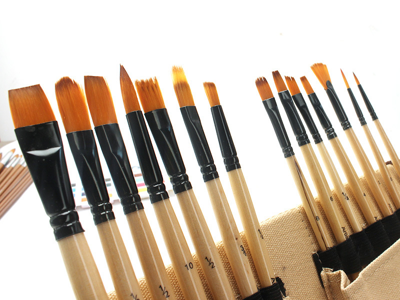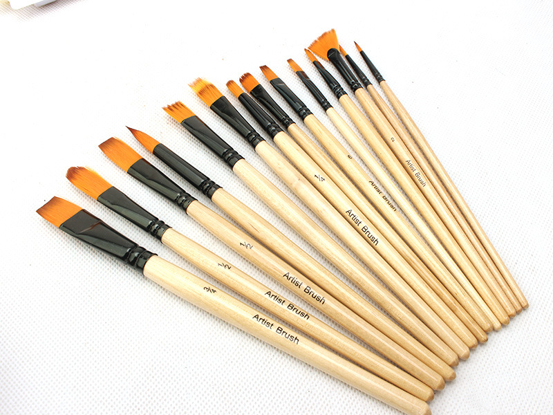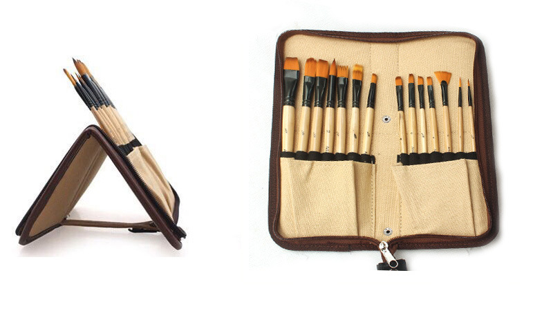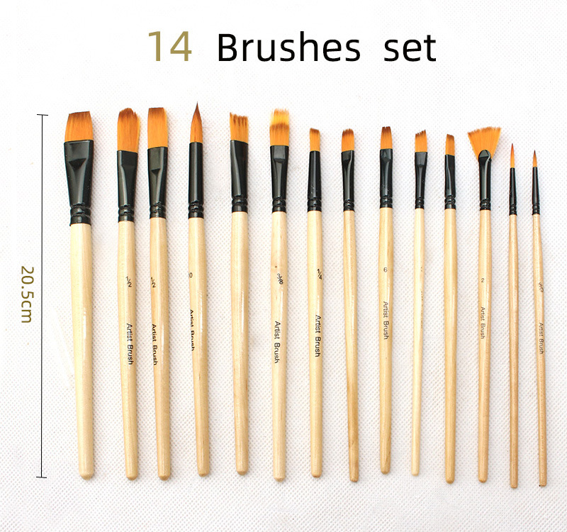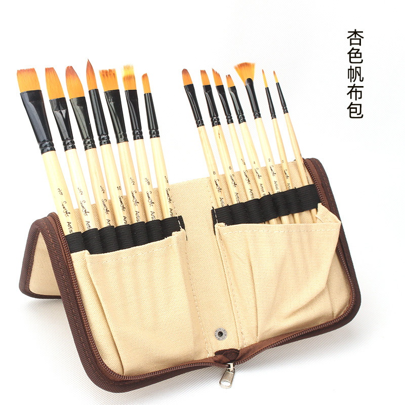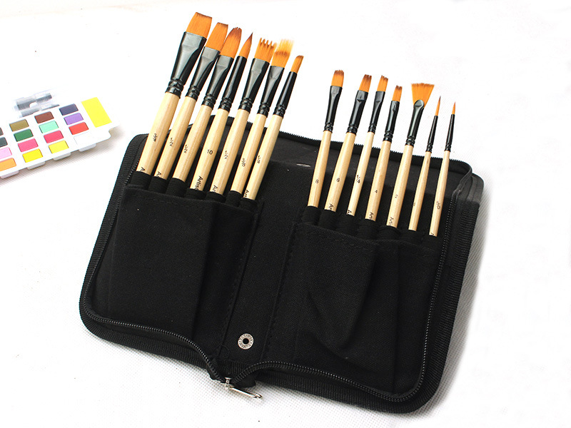 Traje de cepillo de nylon transfronterizo 14 Negro/albaricoque acuarela gouache acrílico aceite cepillo bolsa de lona gratis