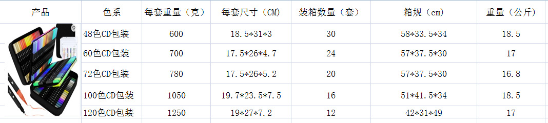 | modelo | Paquete de CD de 24 colores de doble cabeza,Paquete de CD de 36 colores de doble cabeza,Embalaje de CD de 48 colores y dos cabezales,Embalaje de CD de 60 colores y dos cabezales,Embalaje de CD de 72 colores y dos cabezales,Embalaje de CD de 100 colores y dos cabezales,Embalaje de CD de 120 colores y dos cabezales |
