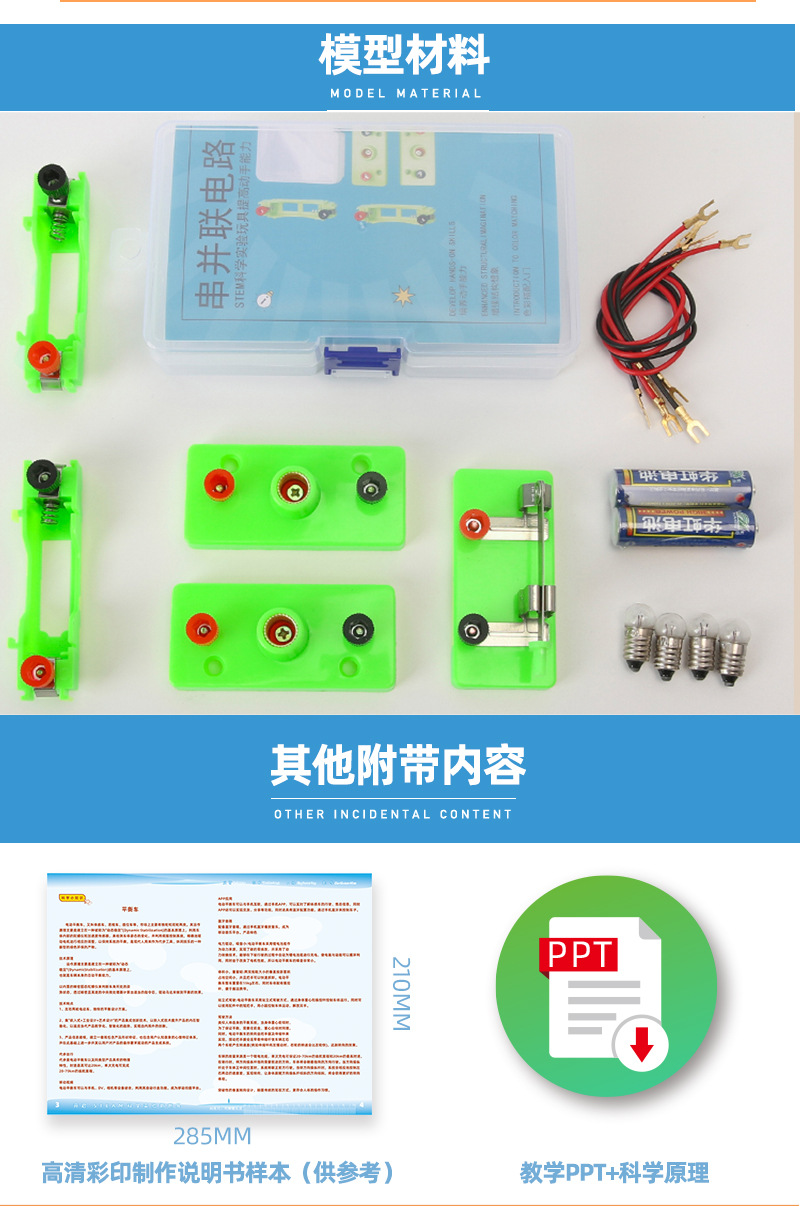 Tecnología de circuito simple pequeña serie de producción caja de experimento paralelo equipo de experimento de Ciencias de la escuela primaria circuito de soporte de lámpara pequeña